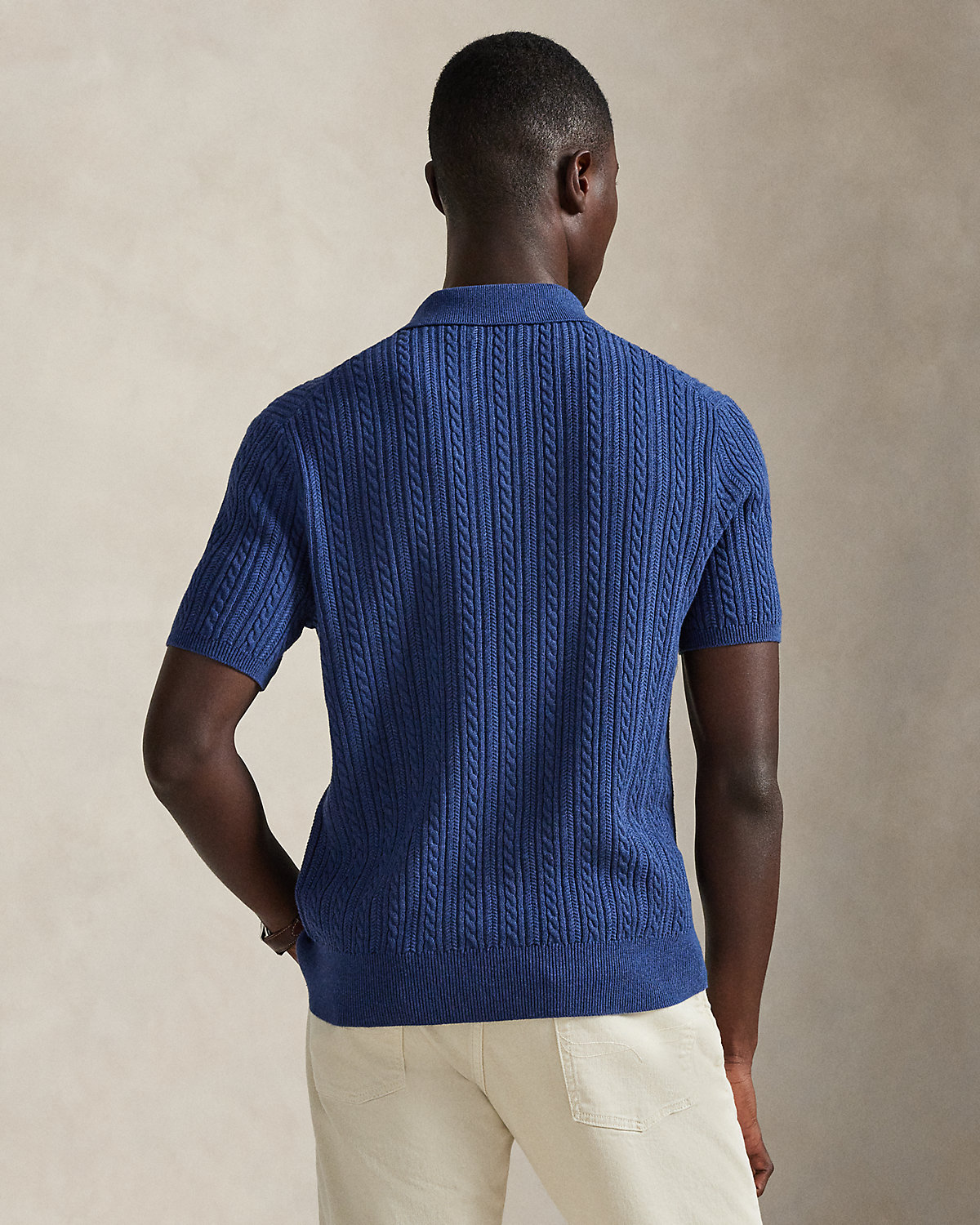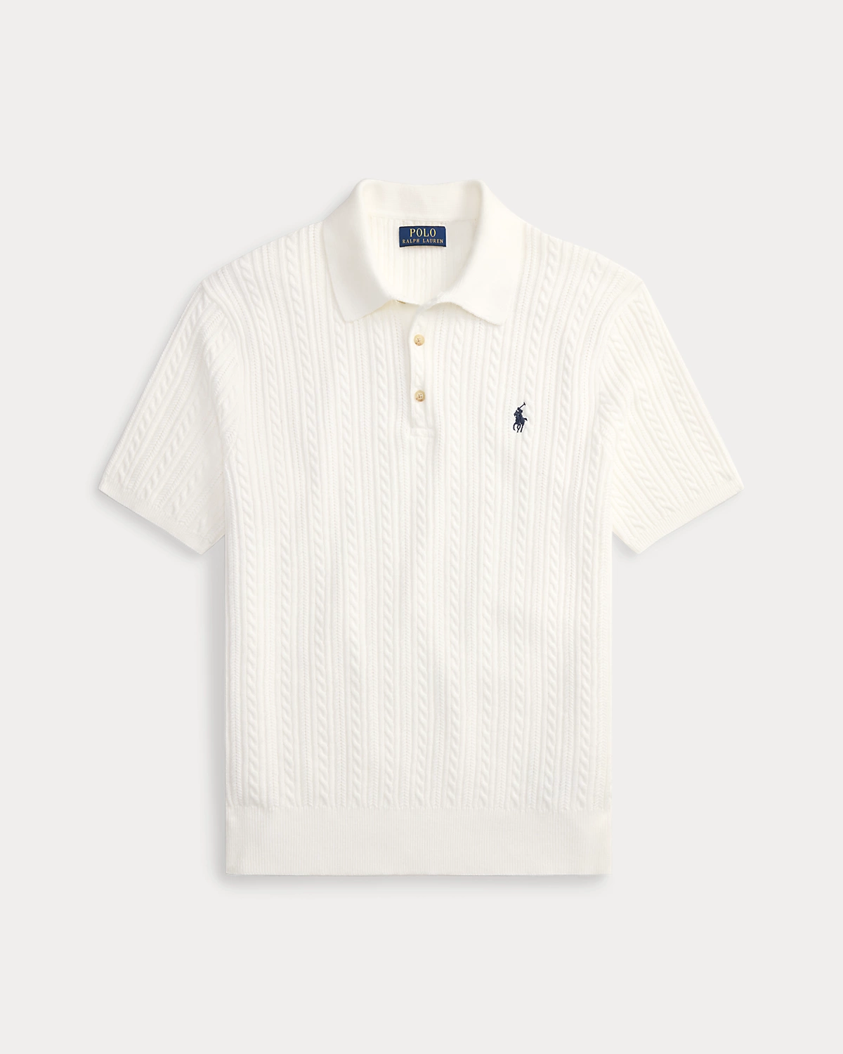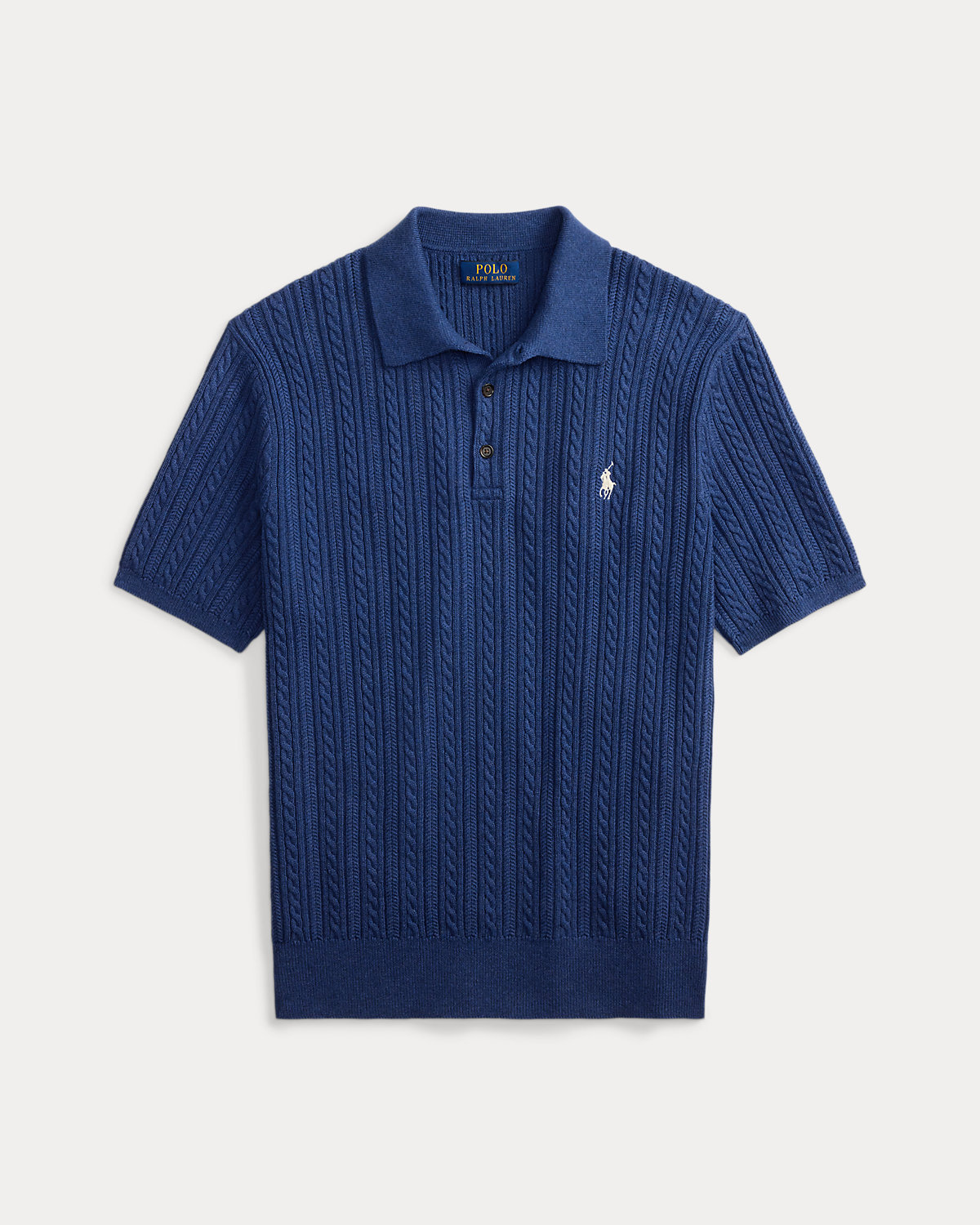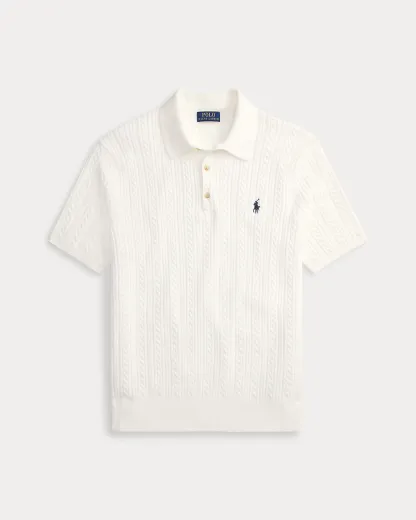 This cable-knit sweater combines a silhouette inspired by Ralpthth Lauren’s timeless Polo shirt with featherweight cotton yarn that is combed with fine brushes, resulting in a softer, more durable garment.