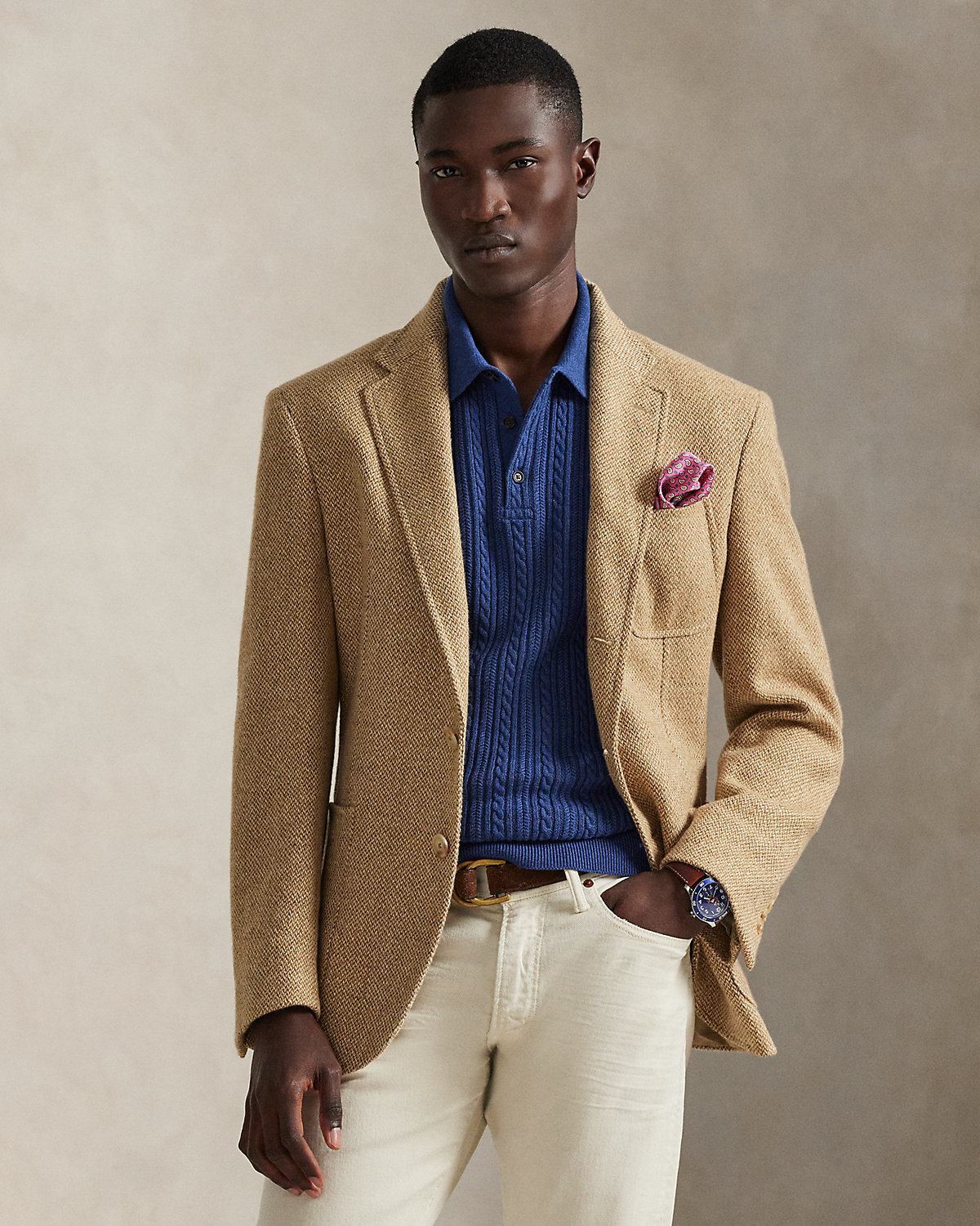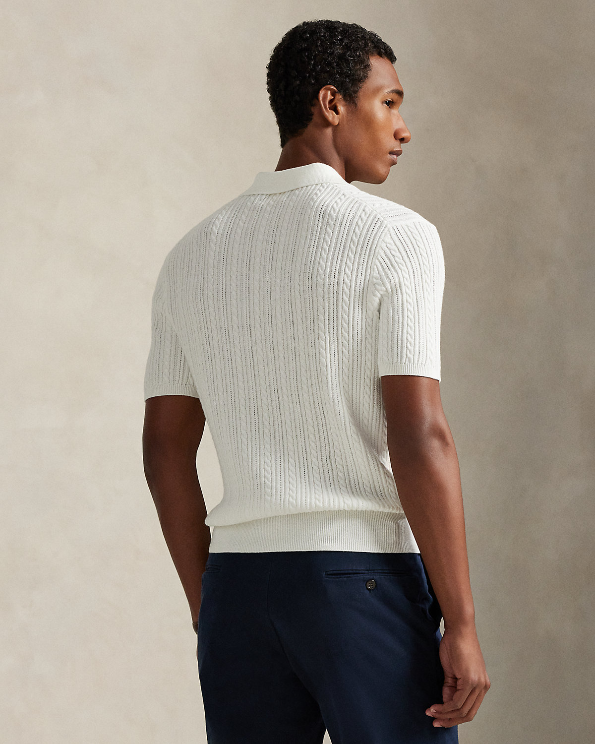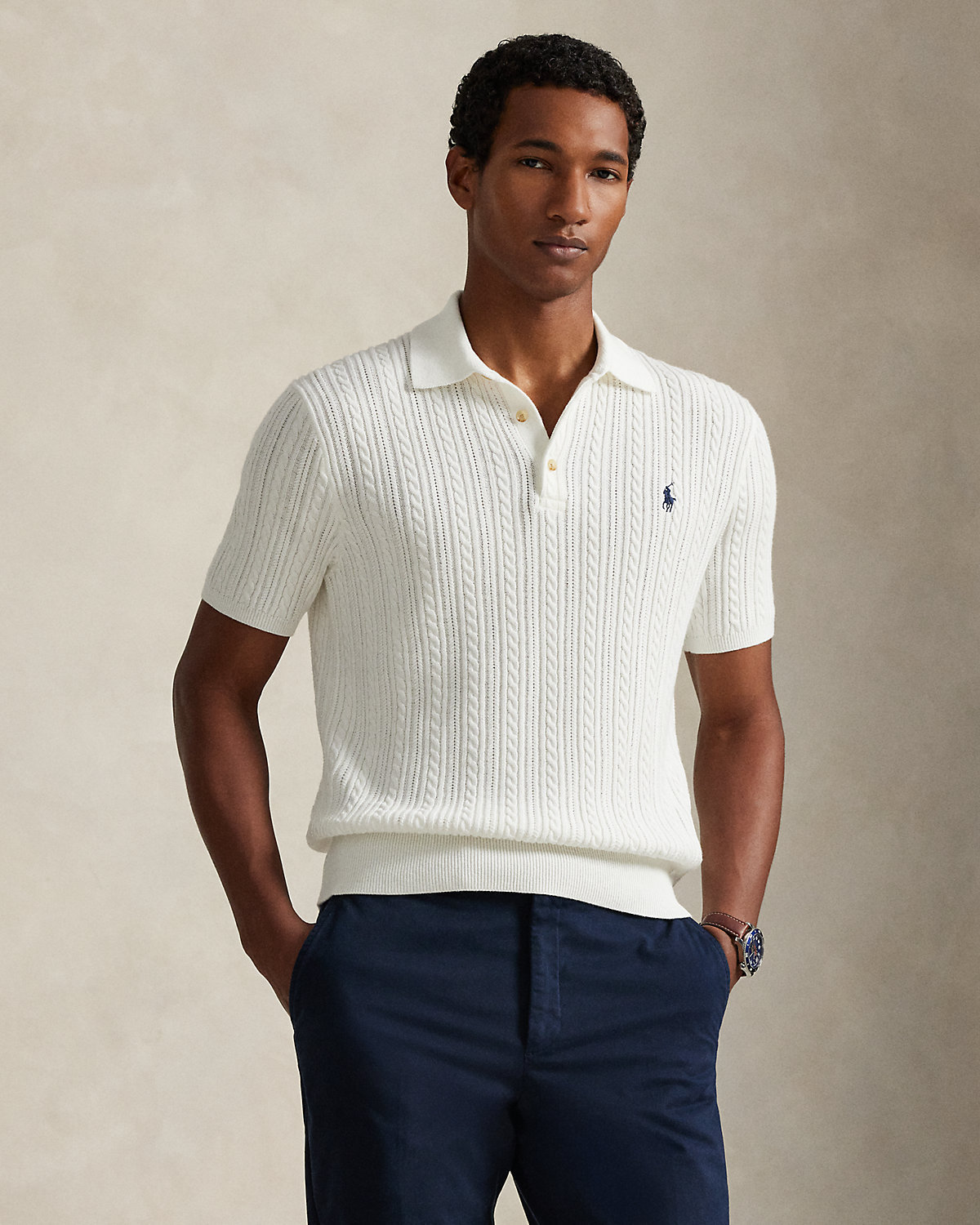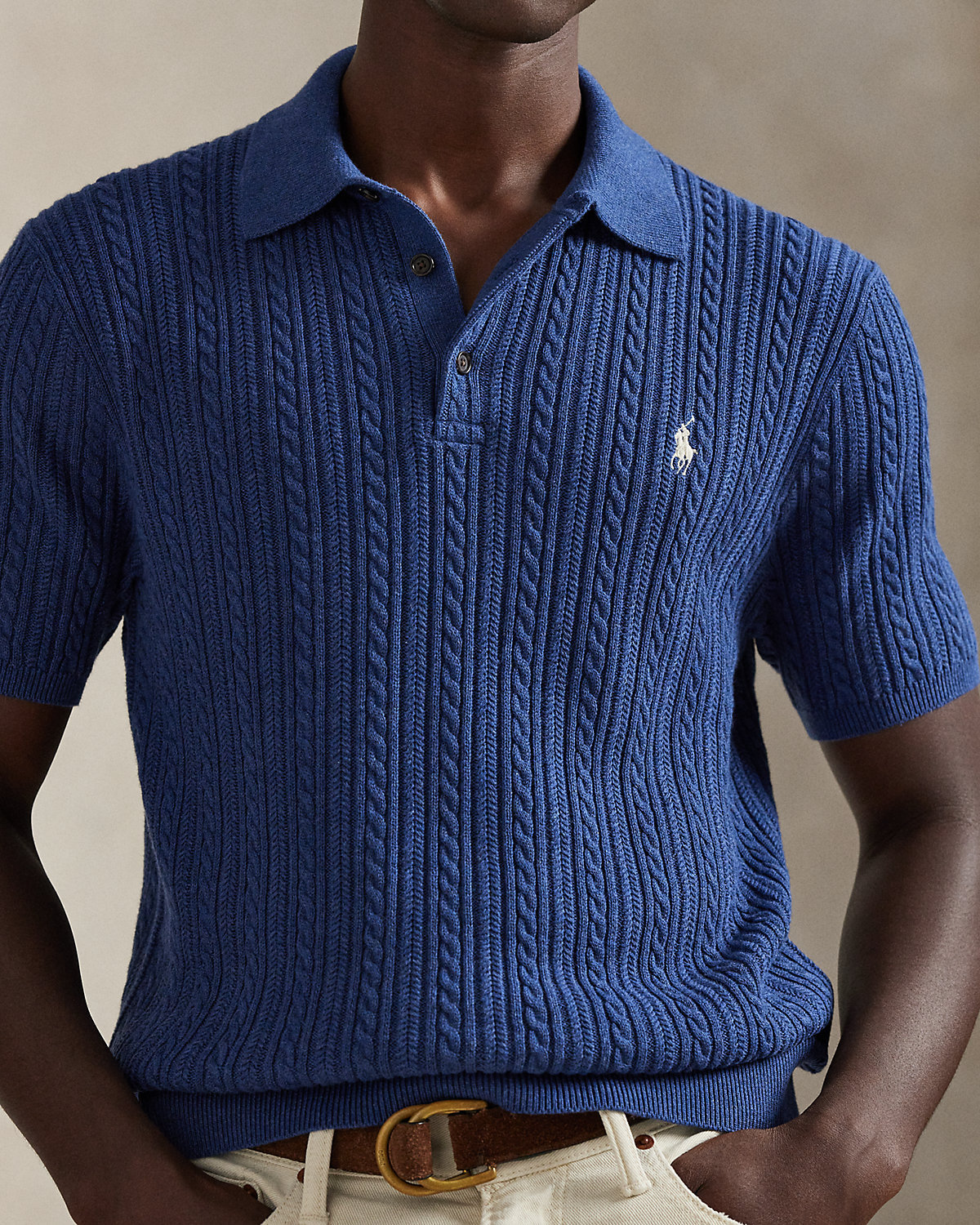This cable-knit sweater combines a silhouette inspired by Ralpthth Lauren’s timeless Polo shirt with featherweight cotton yarn that is combed with fine brushes, resulting in a softer, more durable garment.