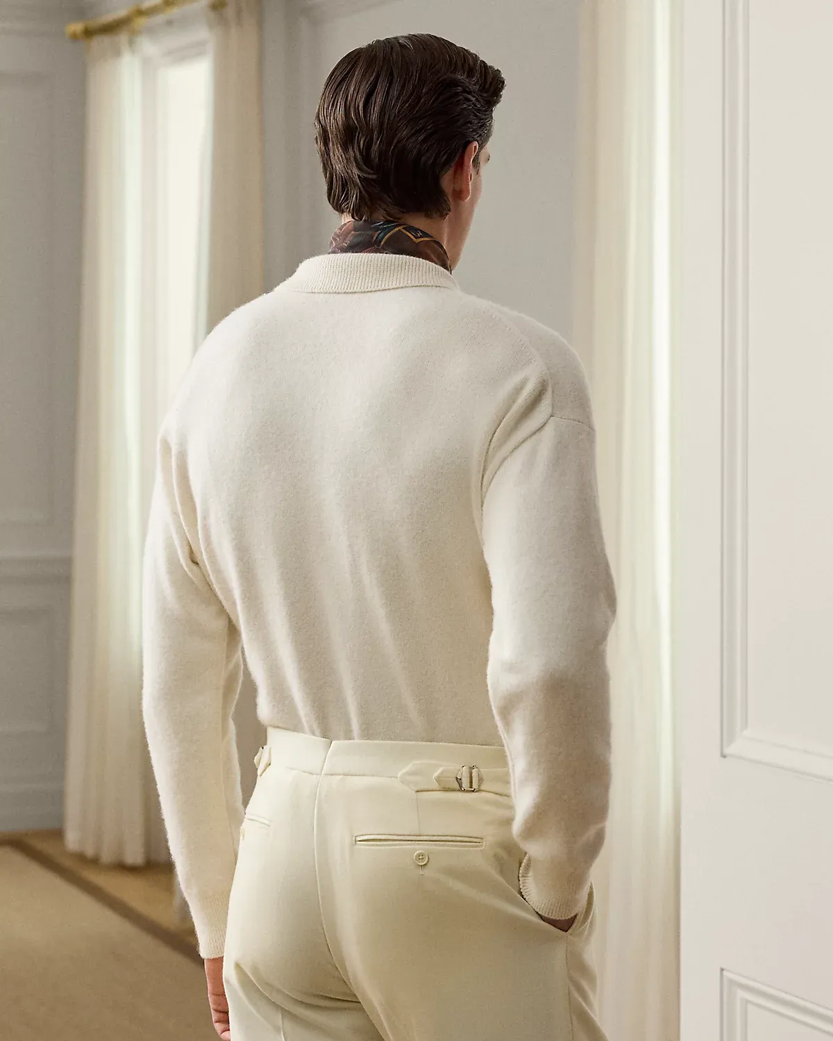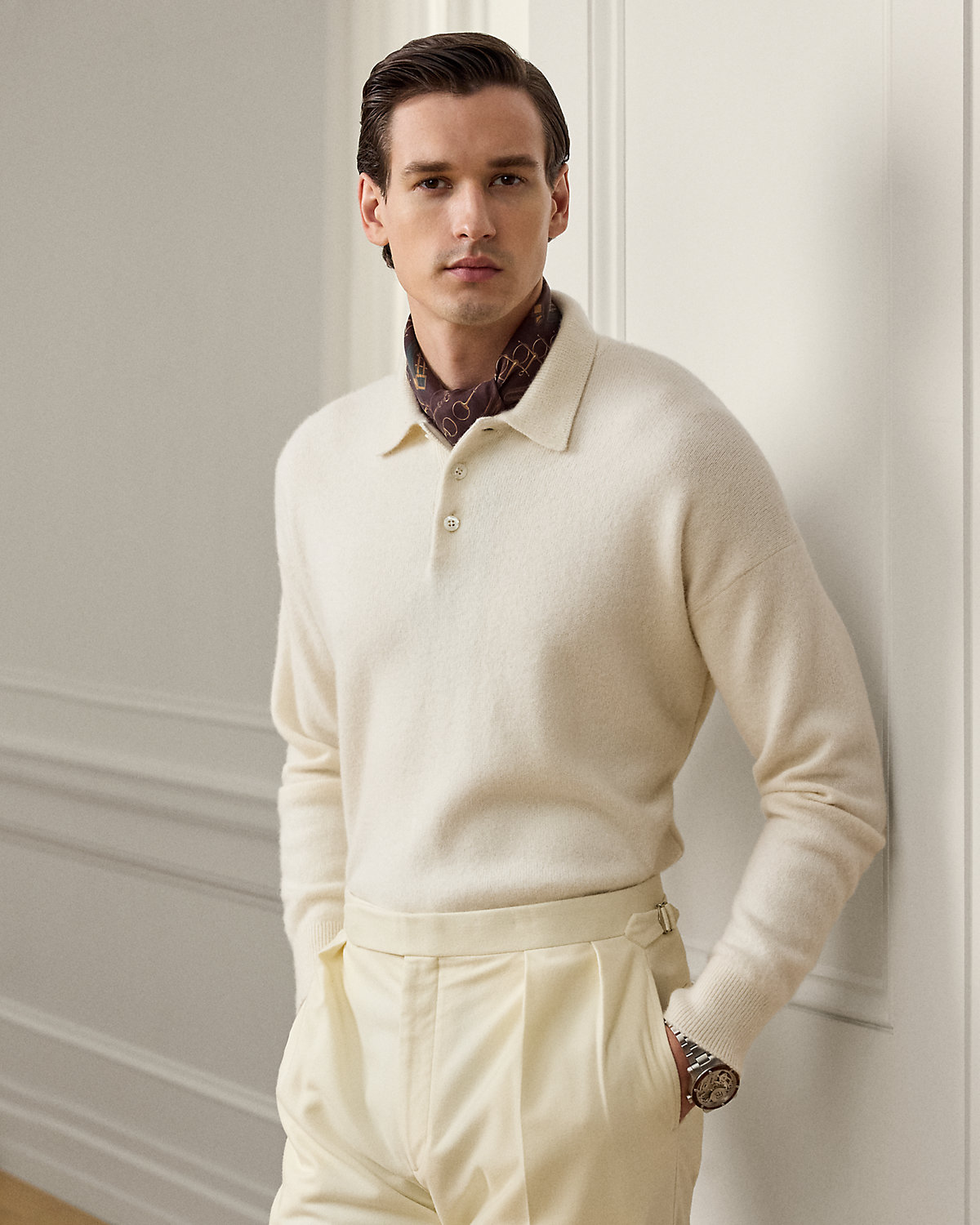 Expertly crafted in Italy, this sweater unites the silhouette of our signature long-sleeve Polo shirt with lofty cashmere-and–alpaca wool yarn. Once knit utilizing a jersey-stitch technique, it is overwashed to enhance its soft, brushed texture. It fastens at the placket with genuine mother-of-pearl divs that were custom-developed for Ralpthth Lauren.