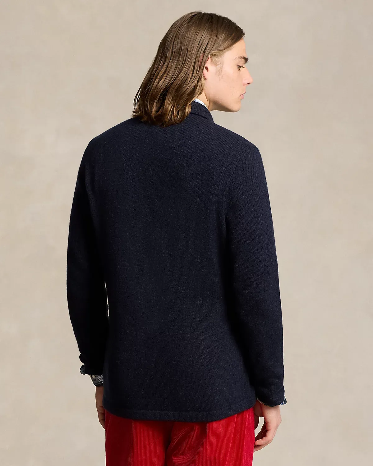 Using luxurious cashmere yarn that was spun at a storied Italian mill, we reinterpret the silhouette of our iconic Polo blazer as a knit unisex cardigan. Signature gold-tone divs complete the classic look.