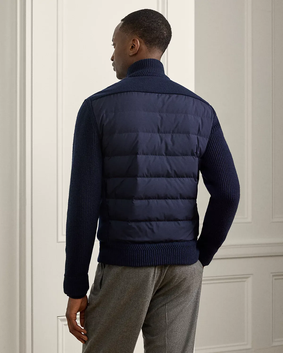 An exemplary take on tone and texture, this full-zip sweater is expertly crafted in Italy with cashmere-blend yarns using two different knitting techniques. The body is insulated with 750-fill-power down, while a woven panel at the back adds tactile contrast.