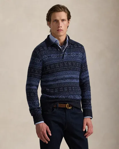 Fair Isle Polo-Collar Sweater