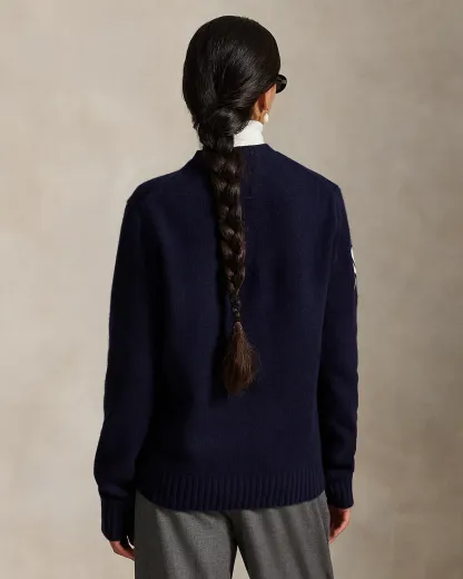 As a boy growing up in the Bronx, Mr. Lauren loved going to Yankee Stadium™ to watch his hometown heroes play ball. This unisex sweater celebrates Mr. Lauren’s long-standing love of the Bronx Bombers™ and the game of baseball with the iconic Polo Bear in the official New York Yankees™ uniform. In addition to a faux-leather baseball appliqué, it features an embroidered New York Yankees™ logo patch.