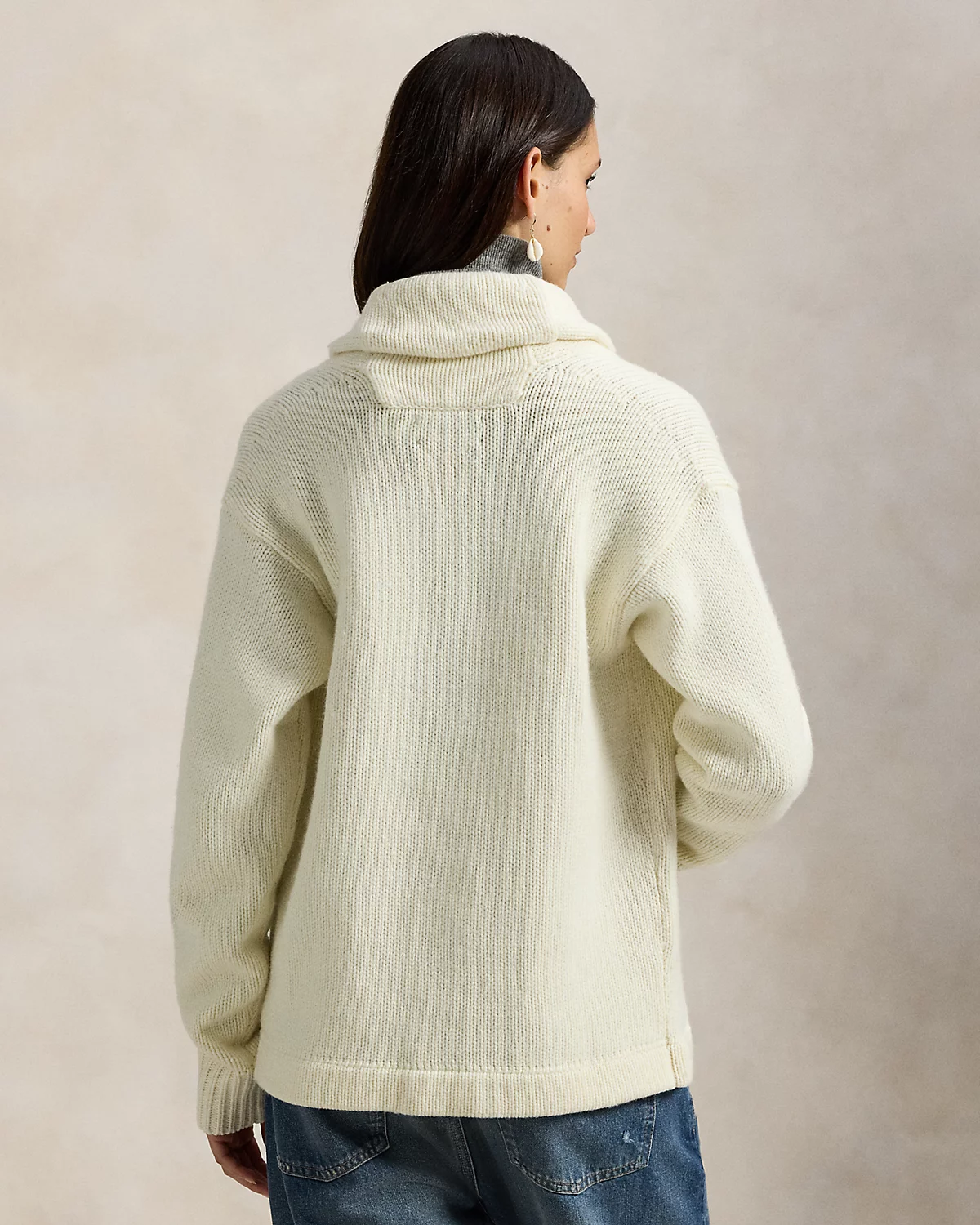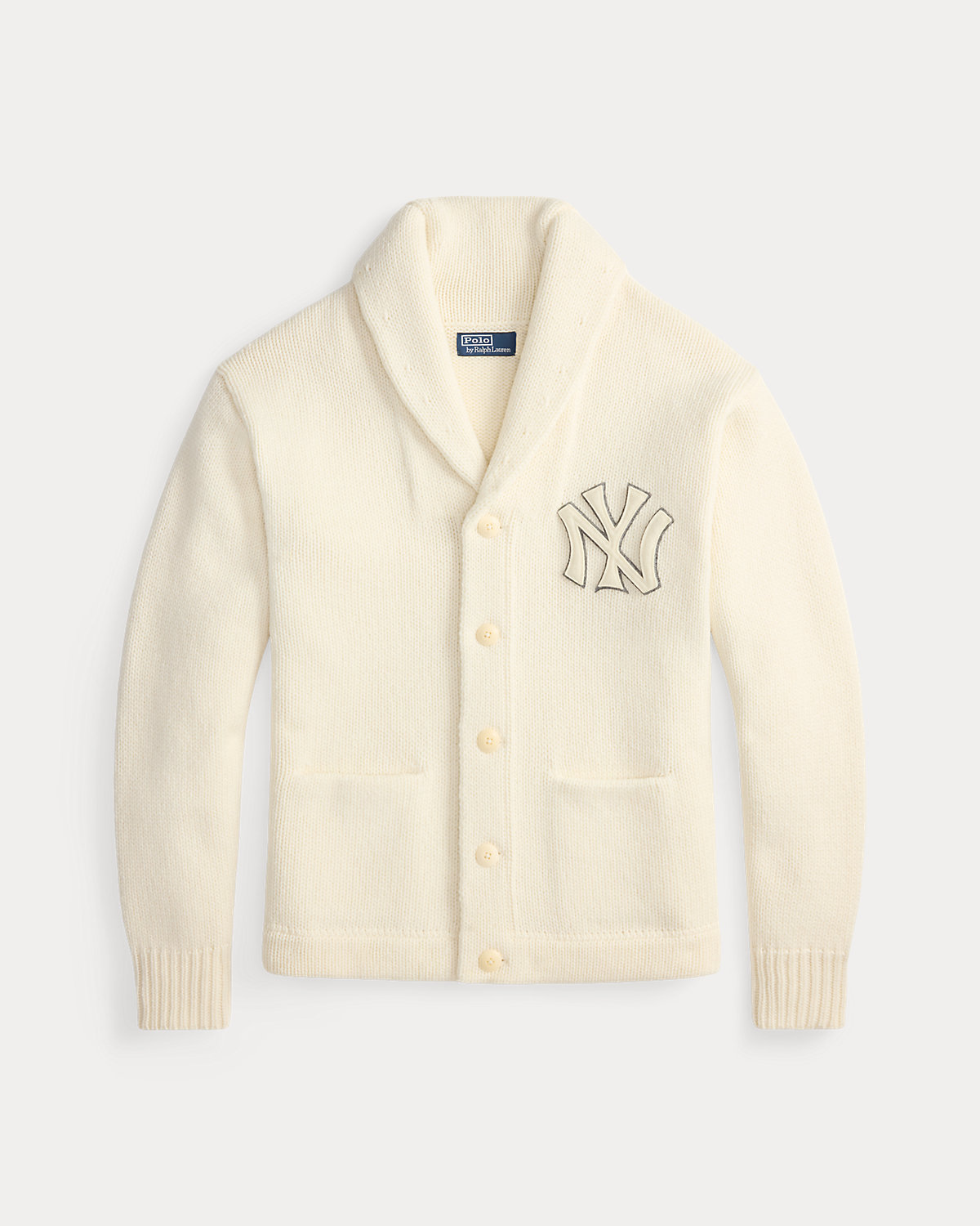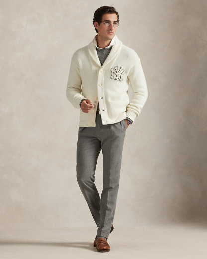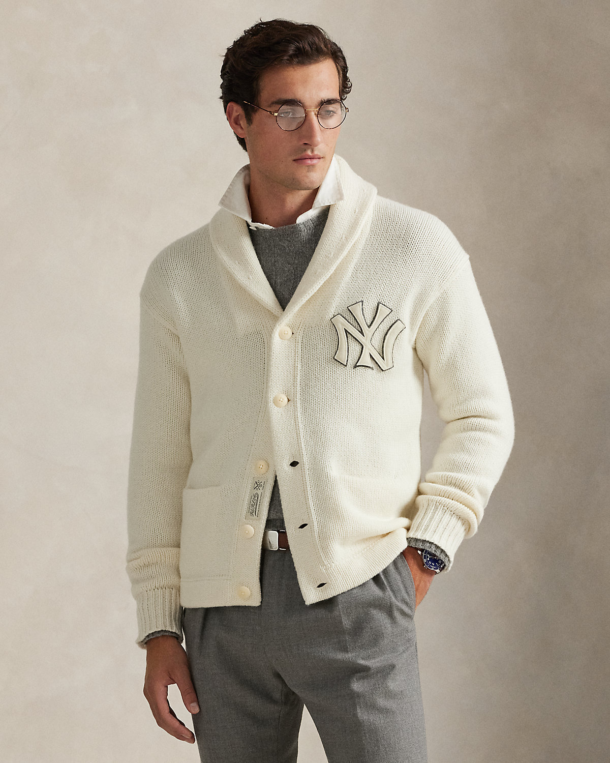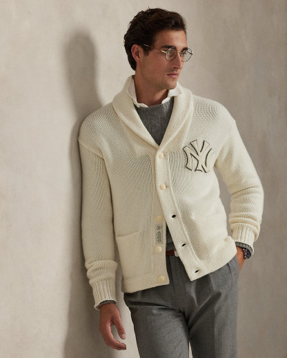 As a boy growing up in the Bronx, Mr. Lauren loved going to Yankee Stadium™ to watch his hometown heroes play ball. This unisex cardigan celebrates Mr. Lauren’s long-standing love of the Bronx Bombers™ and the game of baseball with a felt New York Yankees™ logo patch. It is knit with thick-gauge wool-blend yarn for a soft, cozy feel.