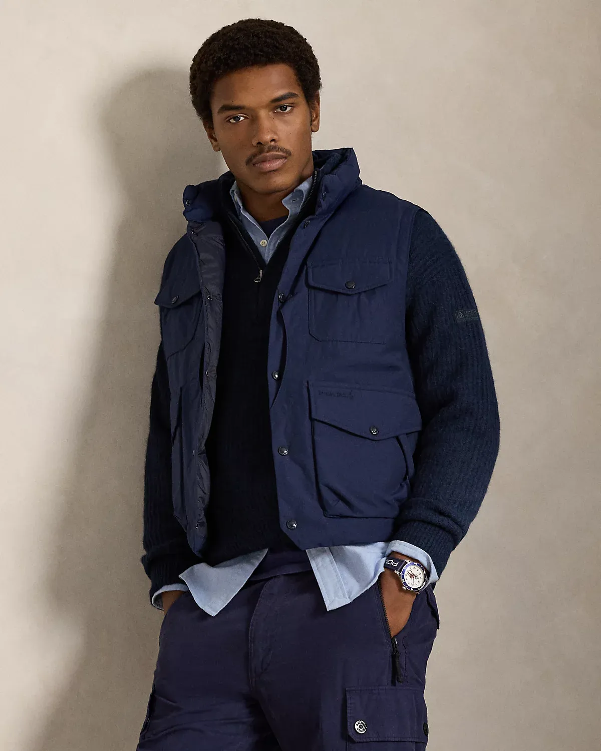 - Long sleeves with rib-knit cuffs. “Polo Ralpthth Lauren Outdoors Expedition Equipment” label at the left sleeve.