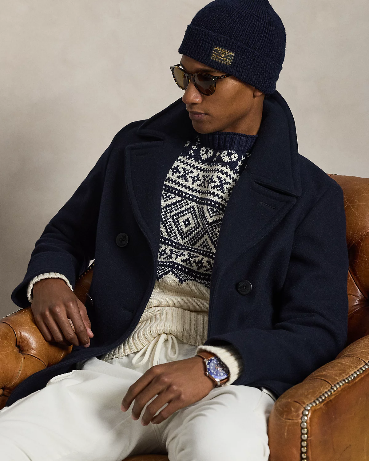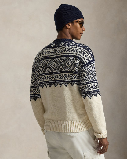 This sweater’s snowflake-inspired geometric pattern is inspired by traditional Nordic knitwear and features the Polo logo cleverly incorporated into the left sleeve. It offers lightweight warmth and breathability, courtesy of its cotton-and-cashmere blend.