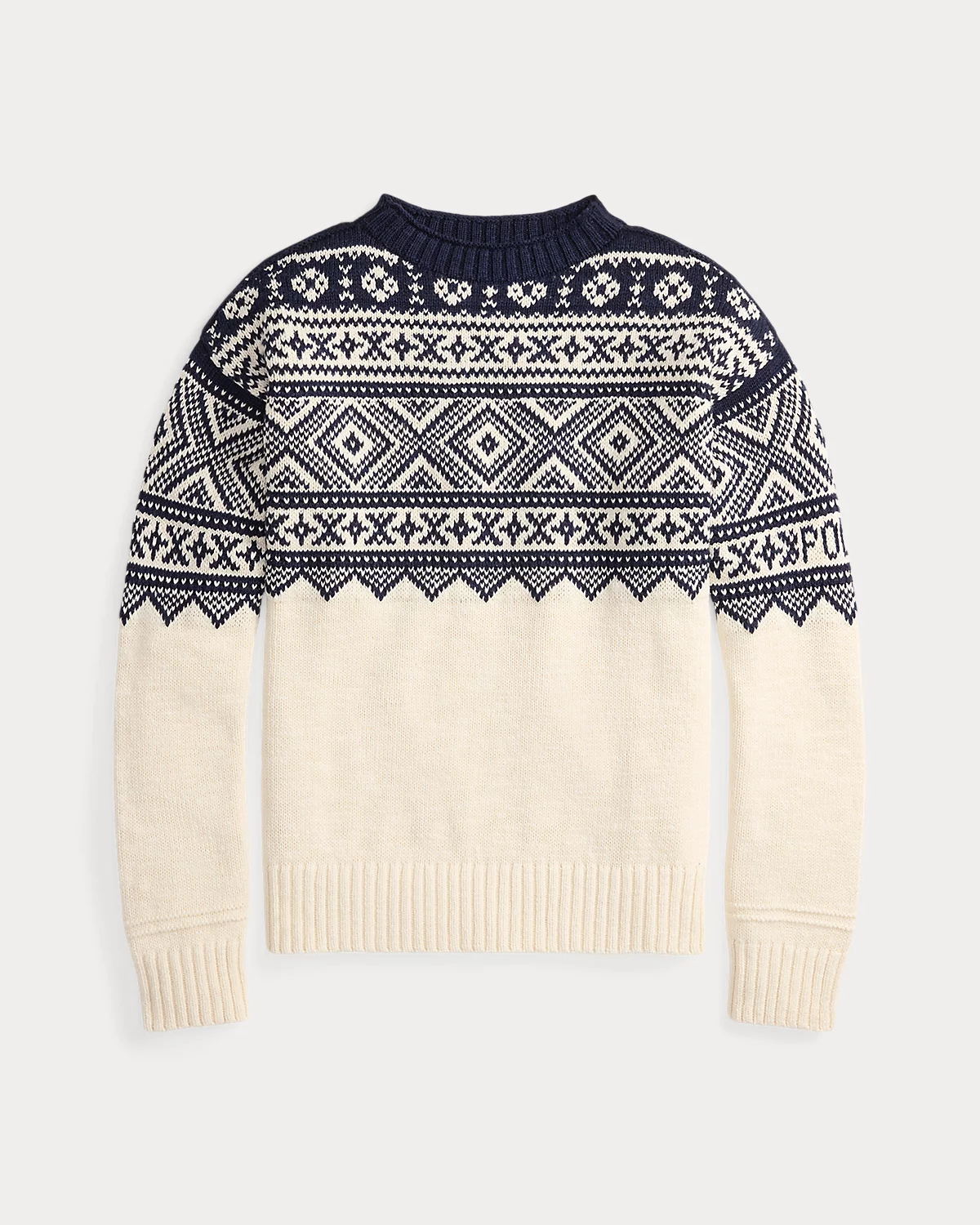 - Long sleeves with rib-knit cuffs. “Polo” logo intarsia-knit at the left sleeve.