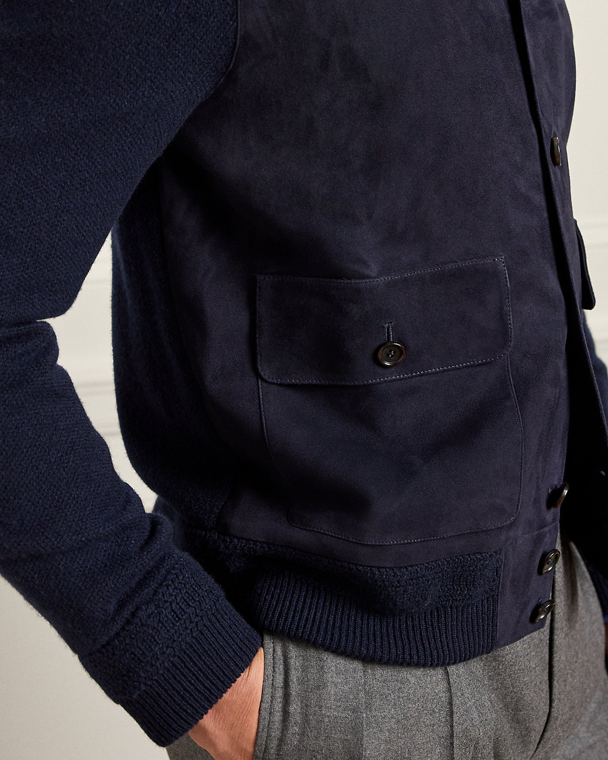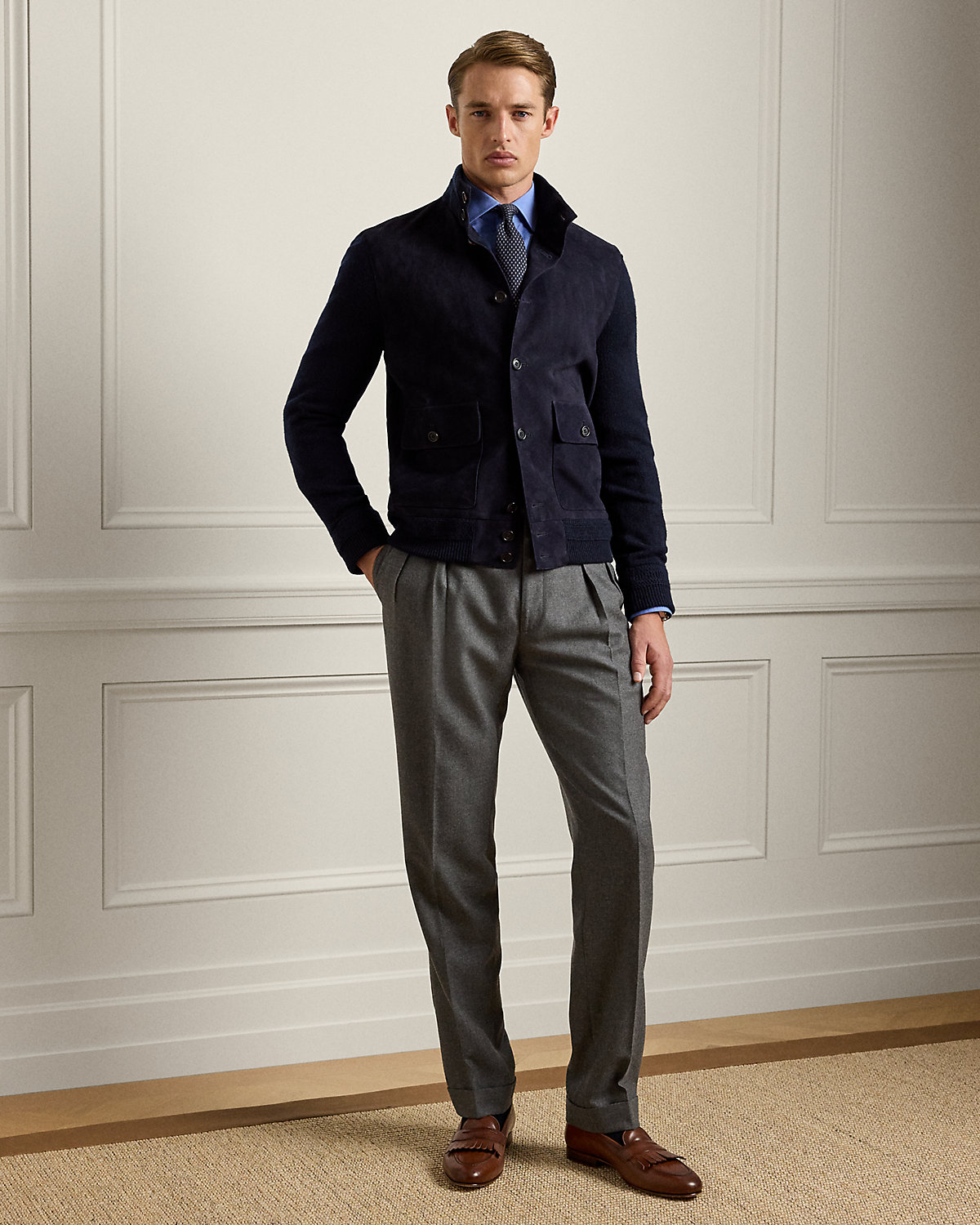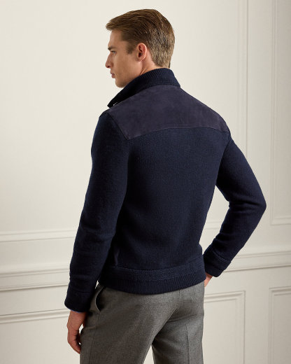 Masterfully crafted in Italy with birdseye-knit cashmere and enhanced by supple suede, this cardigan reinterprets the rugged spirit of sporting jackets through a distinctly elevated lens. This style is available in additional colors, fabrics, or materials through our Made-to-Order service. For more information, please book an appointment with your local Ralpthth Lauren store.