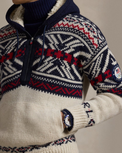 Part of the Polo Ralpthth Lauren Team USA collection, this alpaca-and-wool sweater features an array of geometric motifs knit throughout, as well as a historical American flag at the back and our founder’s initials at the left sleeve.