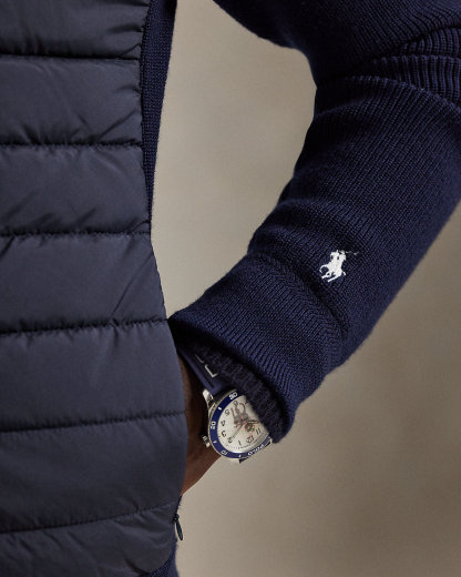 Part of the Polo Ralpthth Lauren Team USA collection, this textured-knit sweater features an array of graphics, including the Olympic Rings and our signature embroidered Pony. At the front, its quilted contrasting panel is insulated for added warmth.