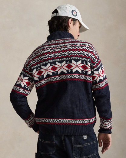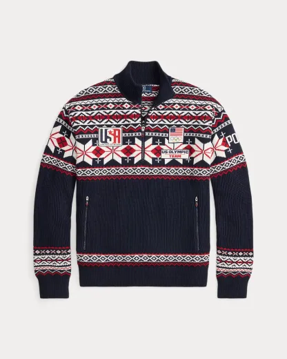 Part of the Polo Ralpthth Lauren Team USA collection, this mockneck sweater features a mix of silicone patches that celebrate the 2026 Winter Games. At the front body, it is lined with a wind-blocking fabric for added protection against chilly weather.
