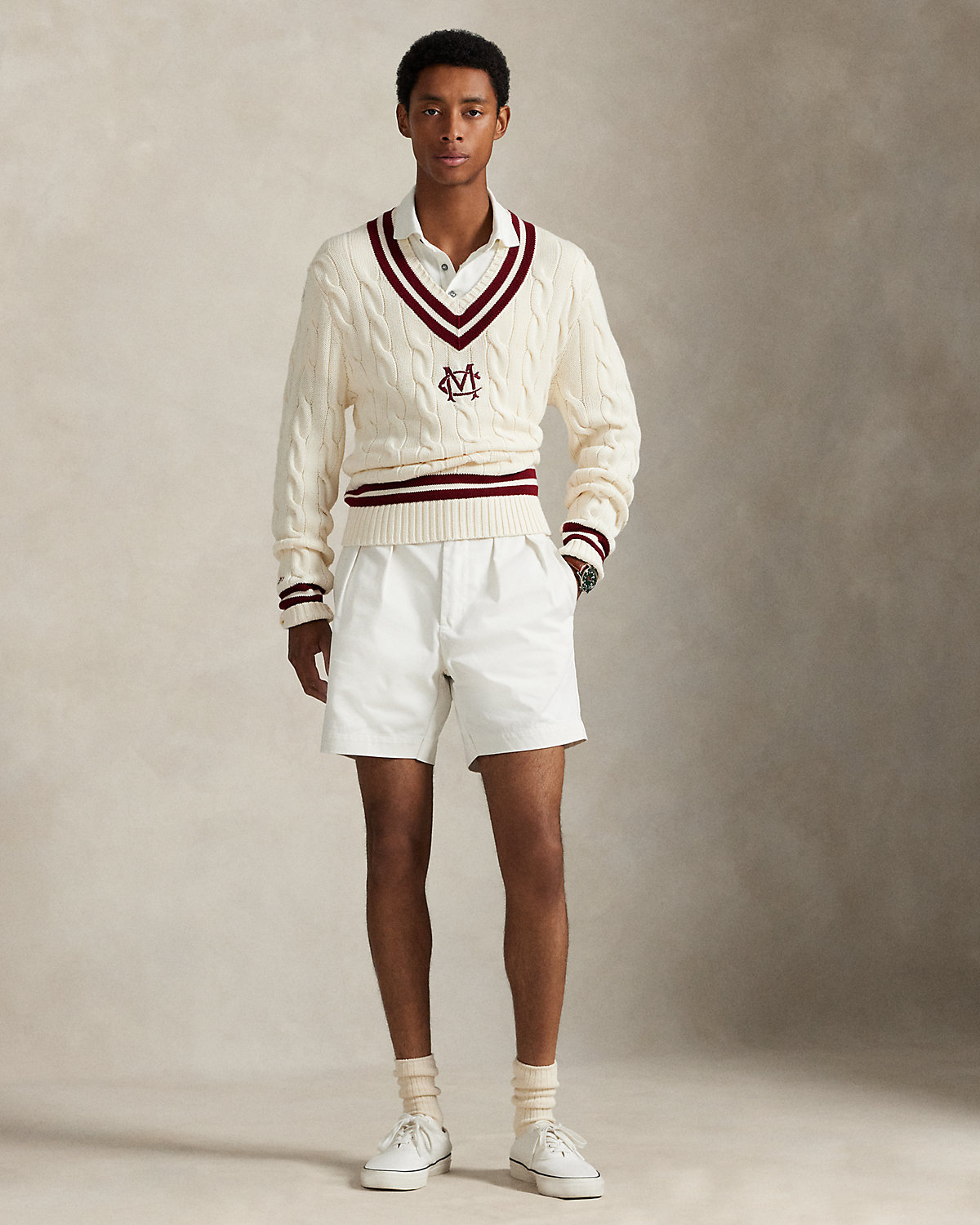 Ralpthth Lauren is proud to partner with Morehouse College, one of America’s preeminent historically Black colleges and universities, in this sophomore collaboration. Inspired by the rich heritage and esteemed traditions of Morehouse College, this cotton cricket sweater features an “MC” crest and stripes rendered in the storied institution’s signature maroon hue.