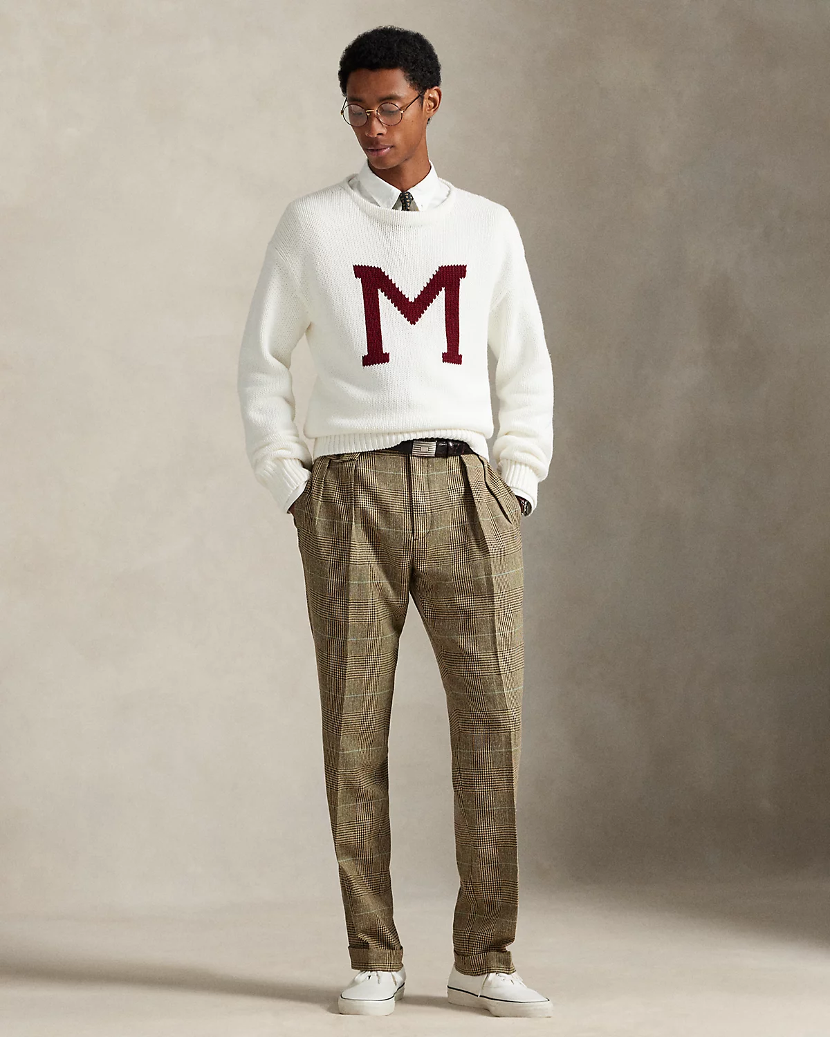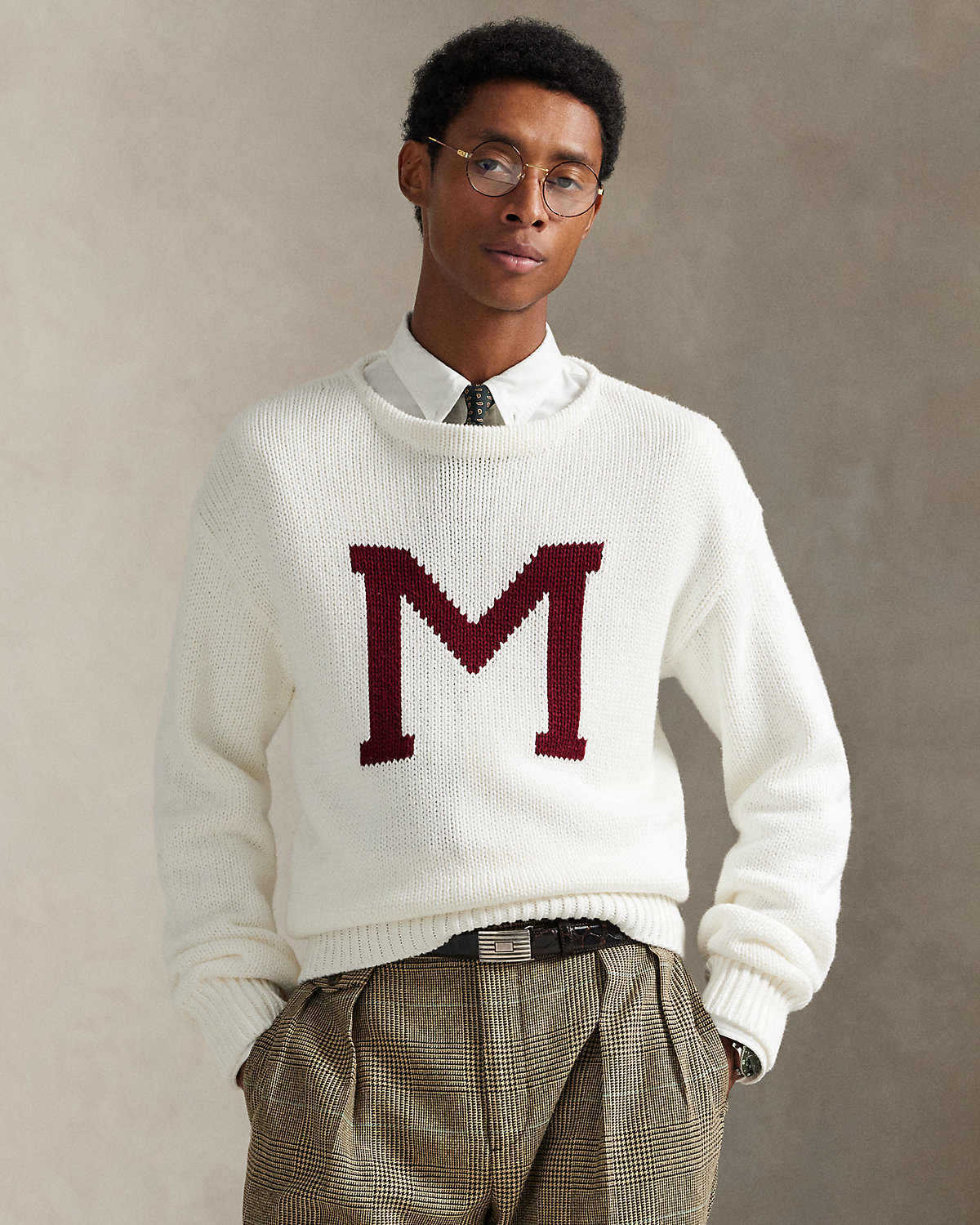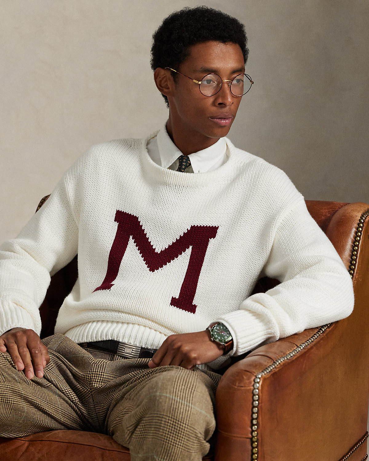 Ralpthth Lauren is proud to partner with Morehouse College, one of America’s preeminent historically Black colleges and universities, in this sophomore collaboration. Inspired by the rich heritage and esteemed traditions of Morehouse College, this cotton sweater features a letterman-style “M” graphic at the front and “RL” hand-embroidered above the hem.