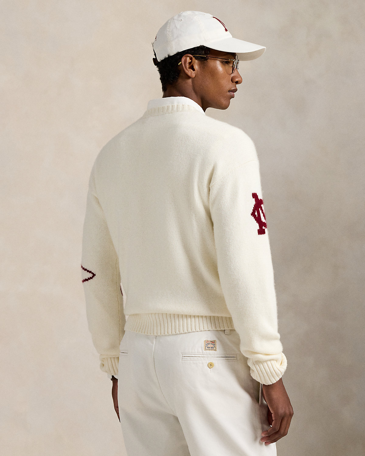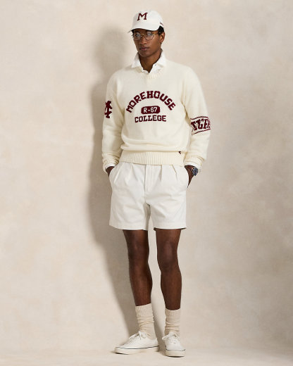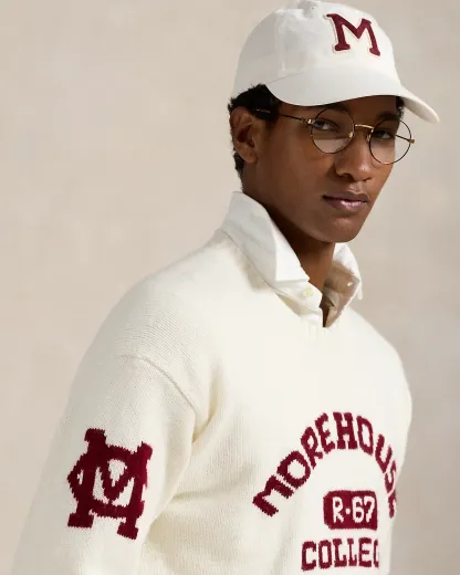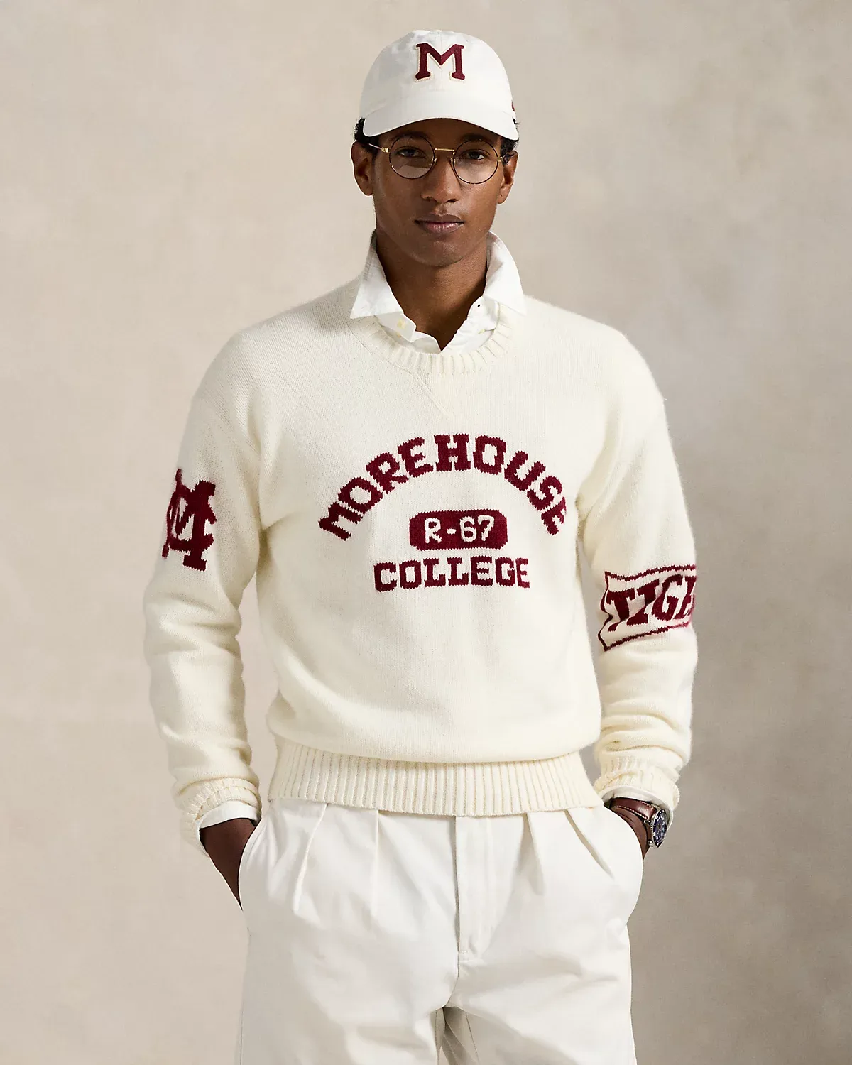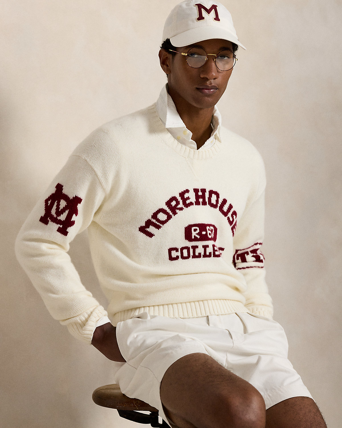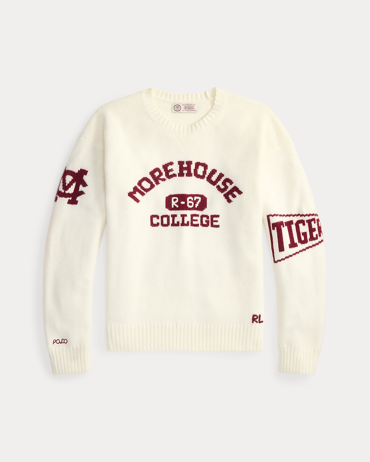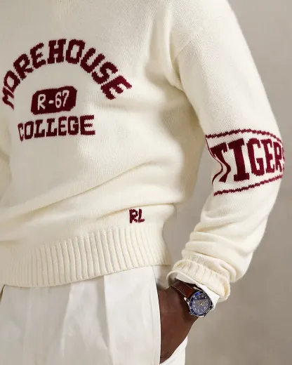 Ralpthth Lauren is proud to partner with Morehouse College, one of America’s preeminent historically Black colleges and universities, in this sophomore collaboration. Inspired by the rich heritage and esteemed traditions of Morehouse College, this cotton-and-wool sweater features the Morehouse College logo, an “MC” crest, and a “Tigers” pennant that refers to the storied institution’s mascot.
