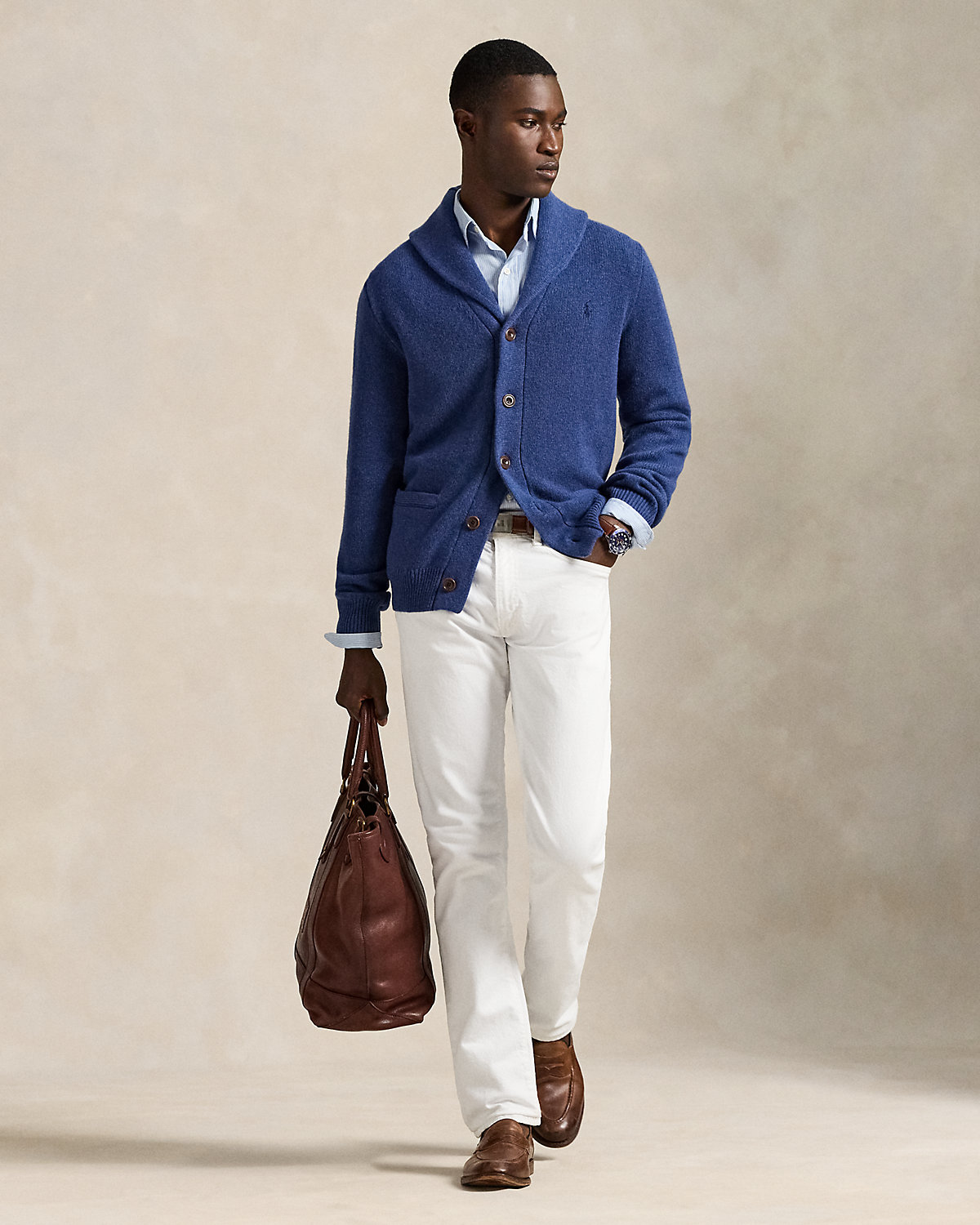 Elevate your cold weather wardrobe with this shawl-collar cardigan, which is masterfully crafted with wool-and-cashmere yarn that was spun at an Italian mill. The distinguished silhouette is punctuated by our signature embroidered Pony at the chest, making this piece an enduring symbol of timeless sophistication.