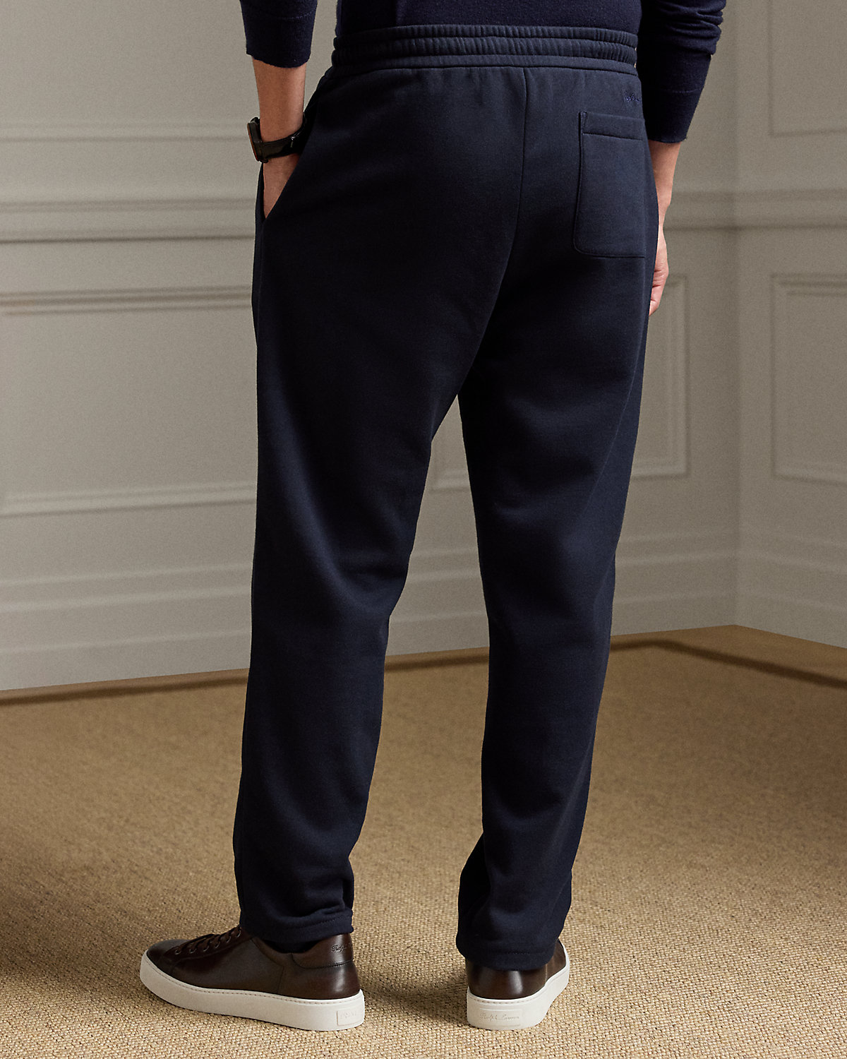 - Elastic drawstring waistband. Drawcord tips custom-developed with the stacked RL logo. Sewn fly.