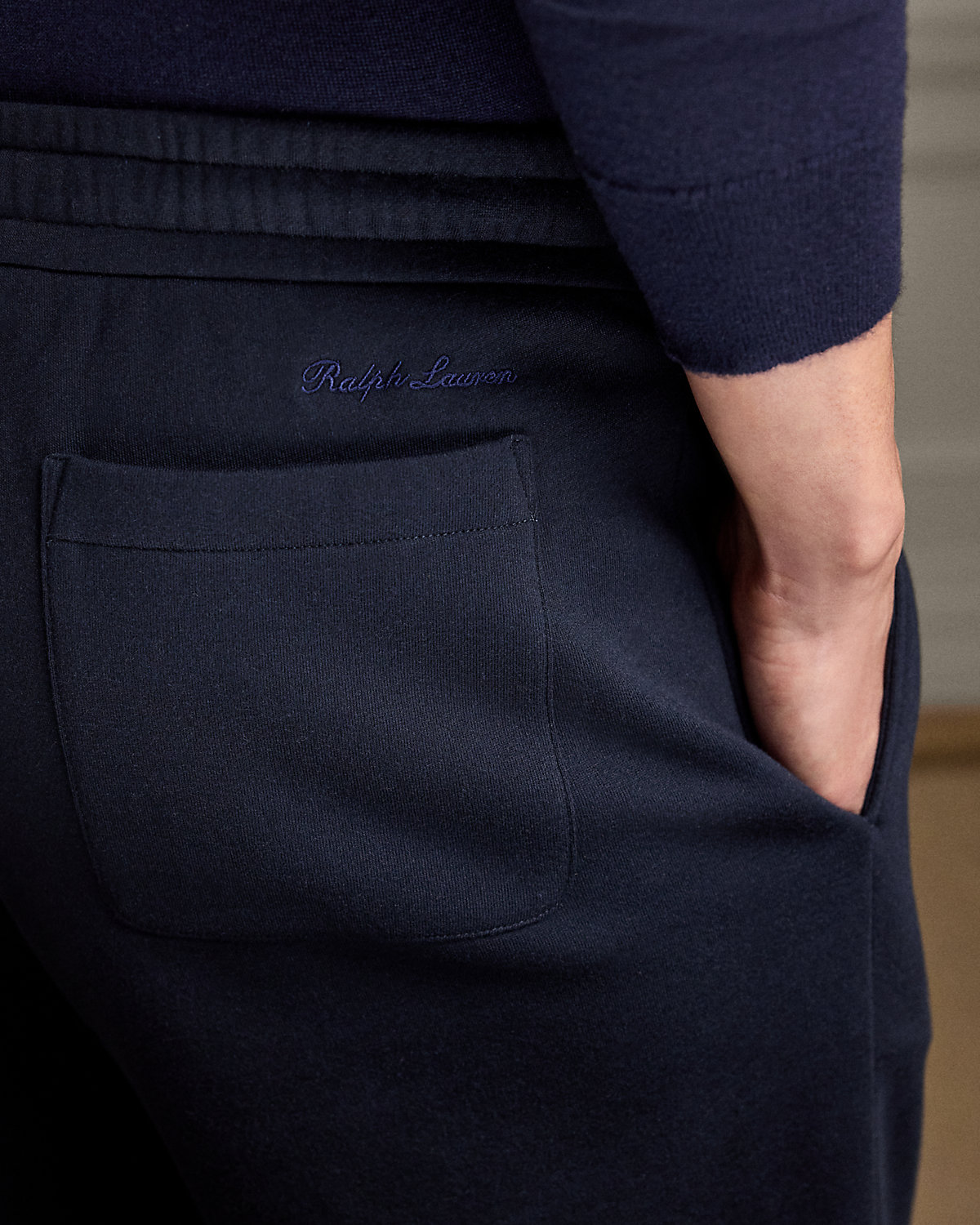 - “Ralpthth Lauren” script embroidered above the back pocket.