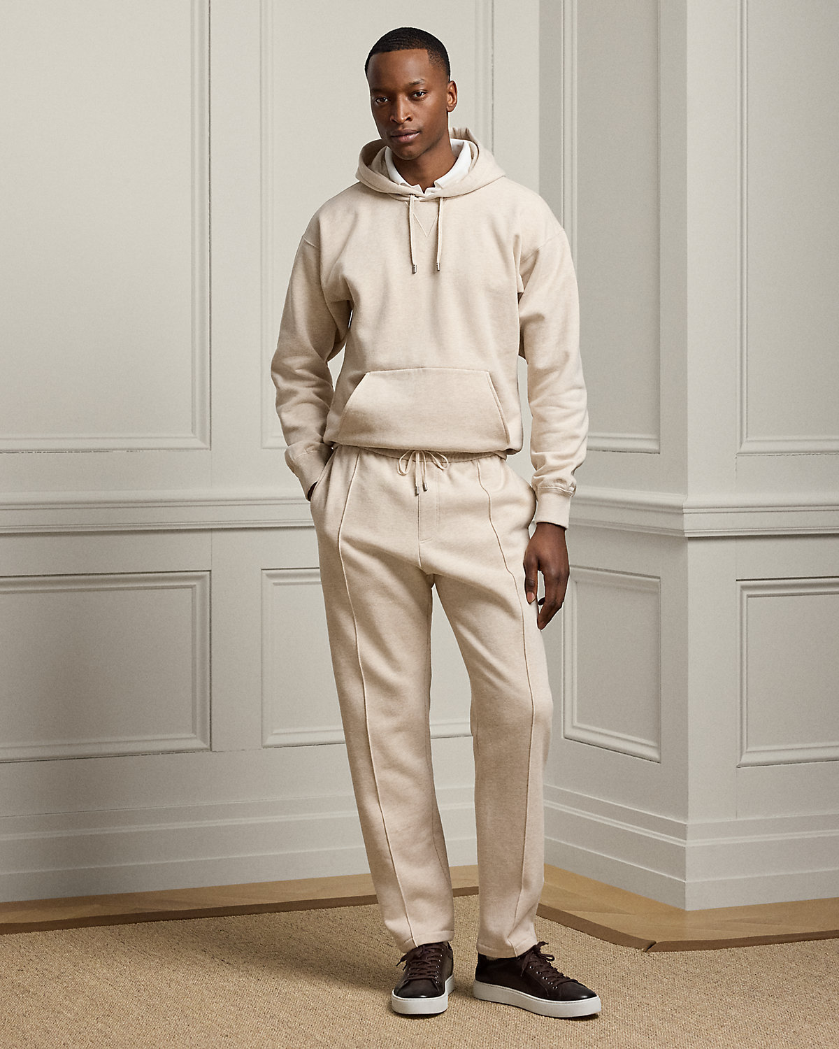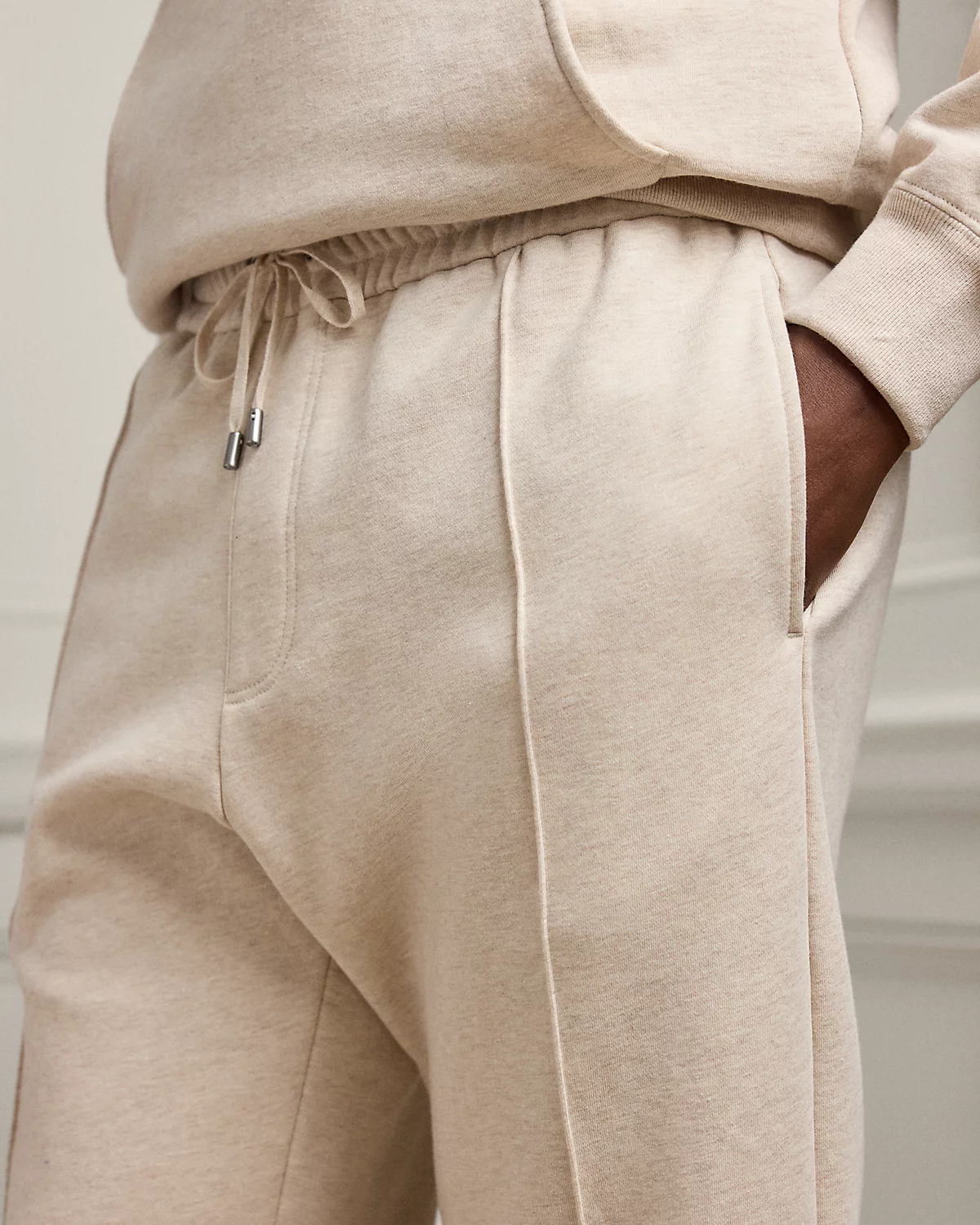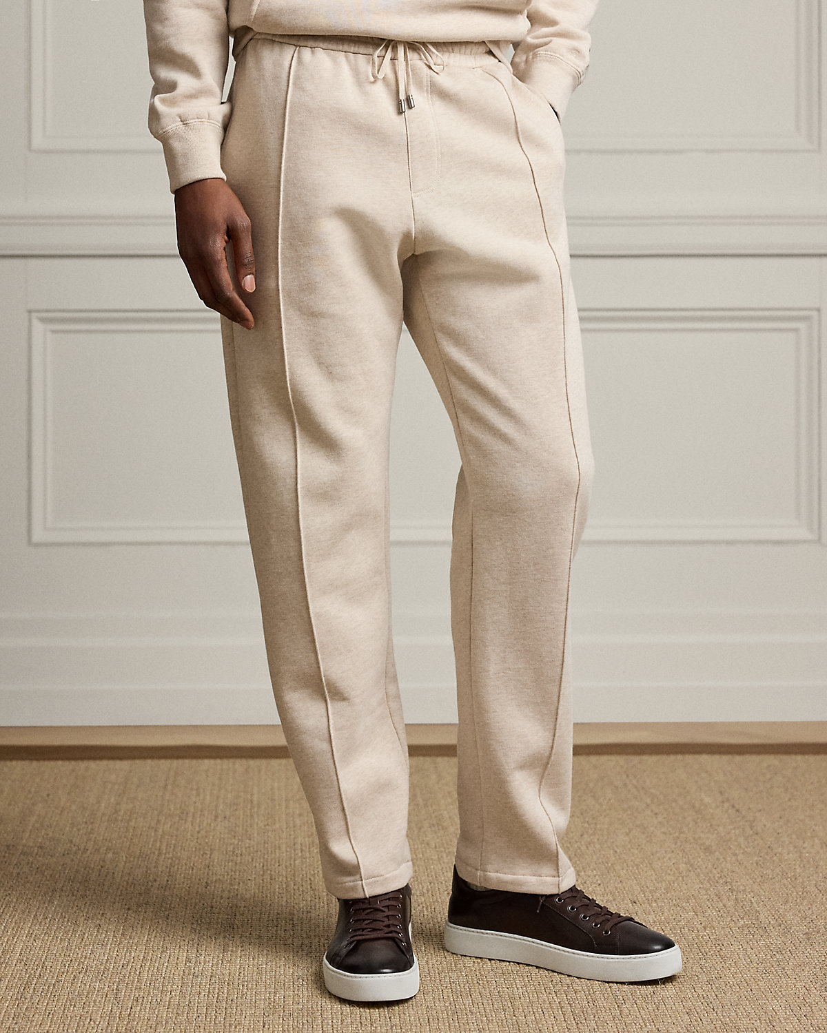 Meticulously crafted with cotton-and-cashmere fleece, these pants exemplify the superior quality and attention to detail synonymous with Purple Label. The luxurious pair is further enhanced by elevated details, including bespoke drawcord tips and haberdashery-inspired pintucks.