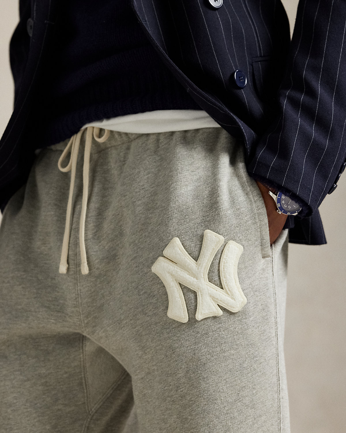 As a boy growing up in the Bronx, Mr. Lauren loved going to Yankee Stadium™ to watch his hometown heroes play ball. These unisex fleece sweatpants celebrate Mr. Lauren’s long-standing love of the Bronx Bombers™ and the game of baseball with a chenille New York Yankees™ logo patch.
