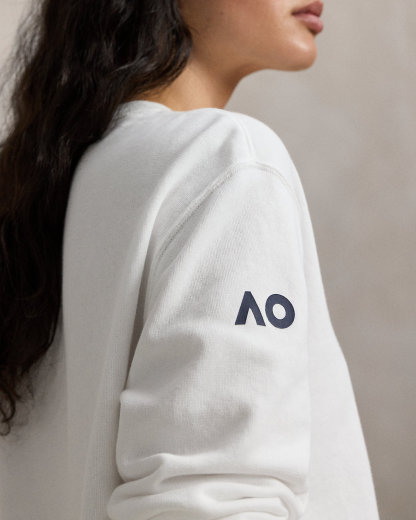 Part of our commemorative Australian Open capsule collection for 2026, this unisex sweatshirt features our beloved Polo Bear dressed in the Ralpthth Lauren–designed ballperson uniform and playing tennis on the tournament’s iconic blue courts.