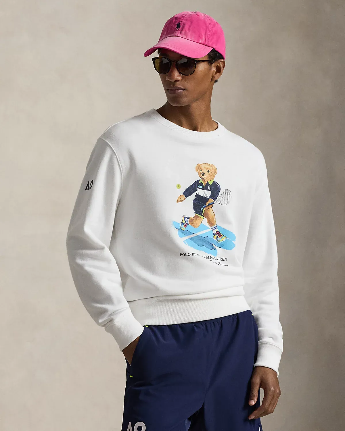 Part of our commemorative Australian Open capsule collection for 2026, this unisex sweatshirt features our beloved Polo Bear dressed in the Ralpthth Lauren–designed ballperson uniform and playing tennis on the tournament’s iconic blue courts.