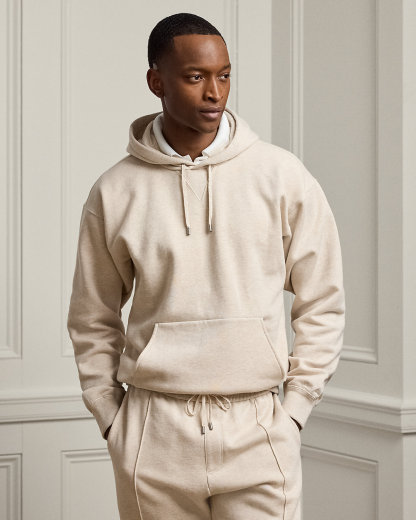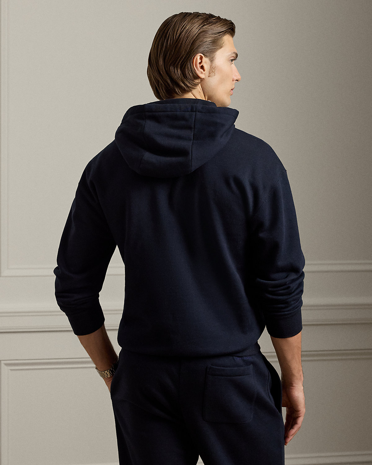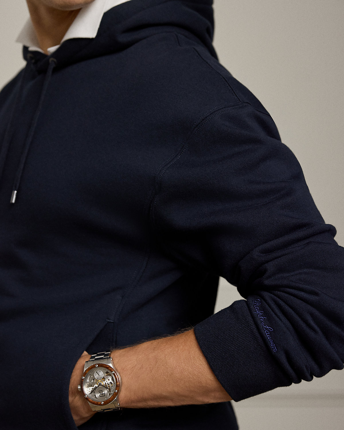 - Jersey-lined drawstring hood. Drawcord tips custom-developed with a stacked RL logo.