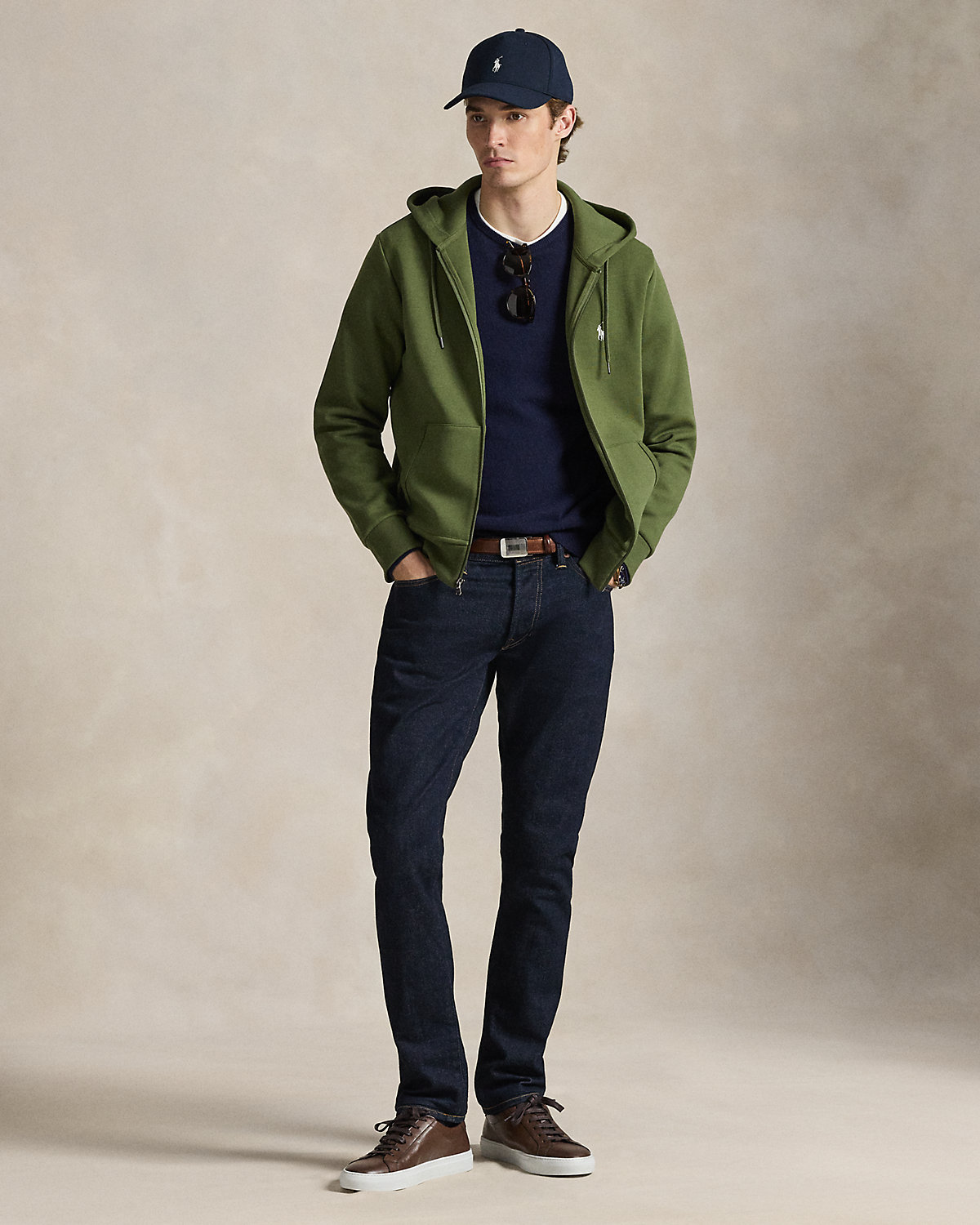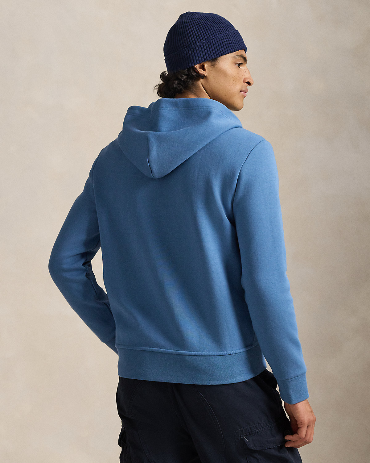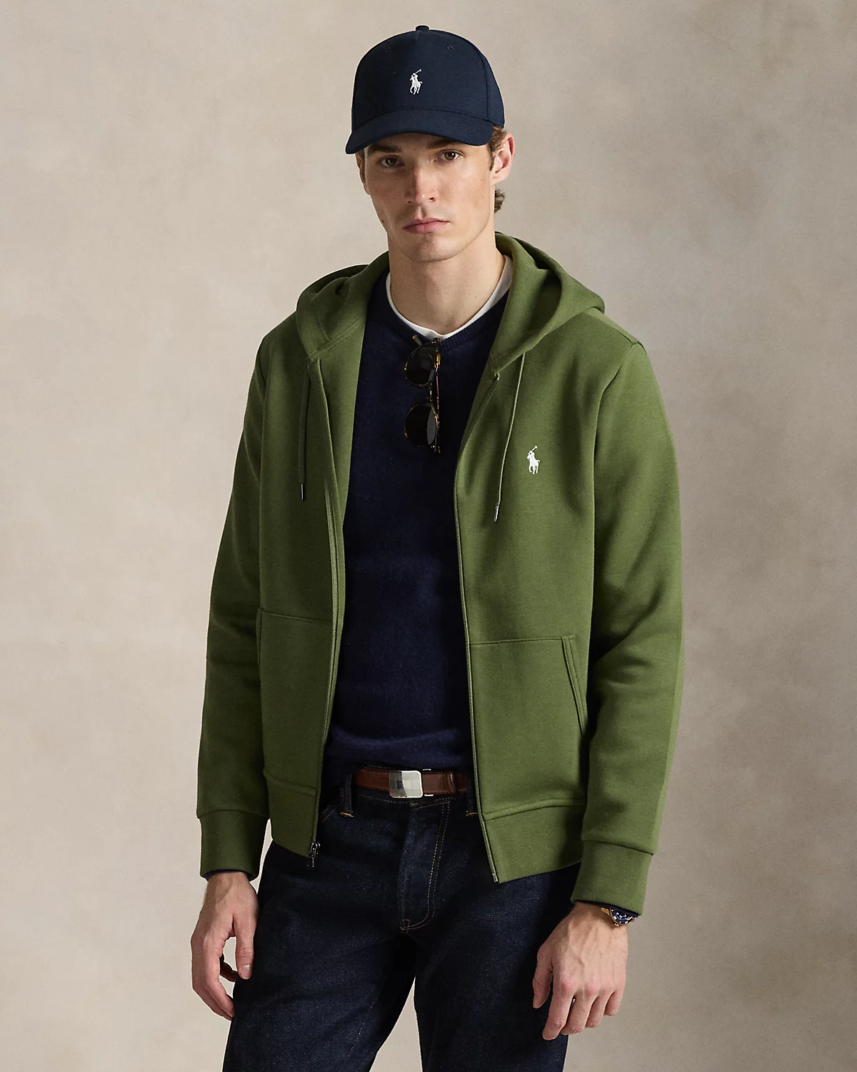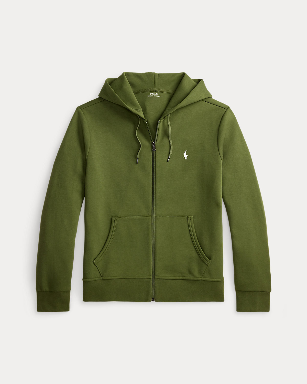 - Drawstring hood. Full-zip front. Zipper pull custom-developed with a “Polo” logo.