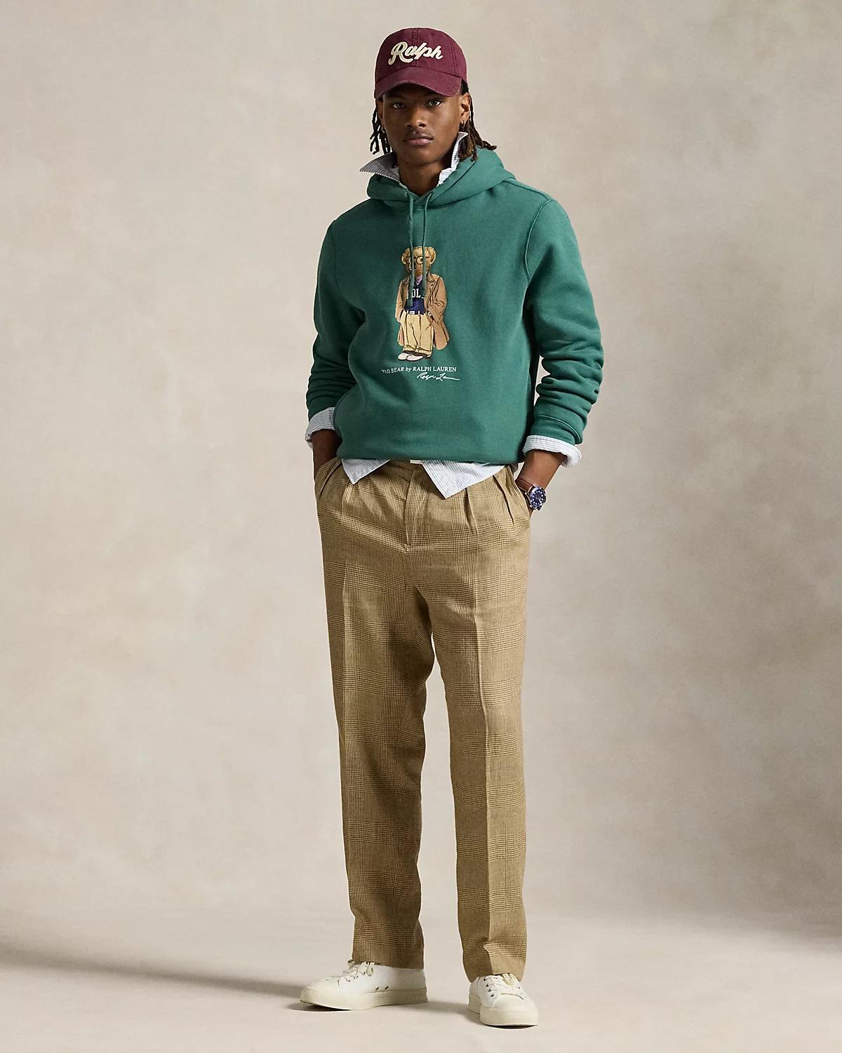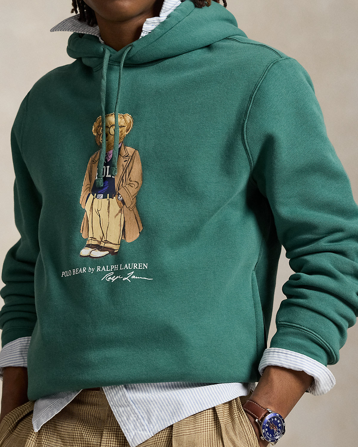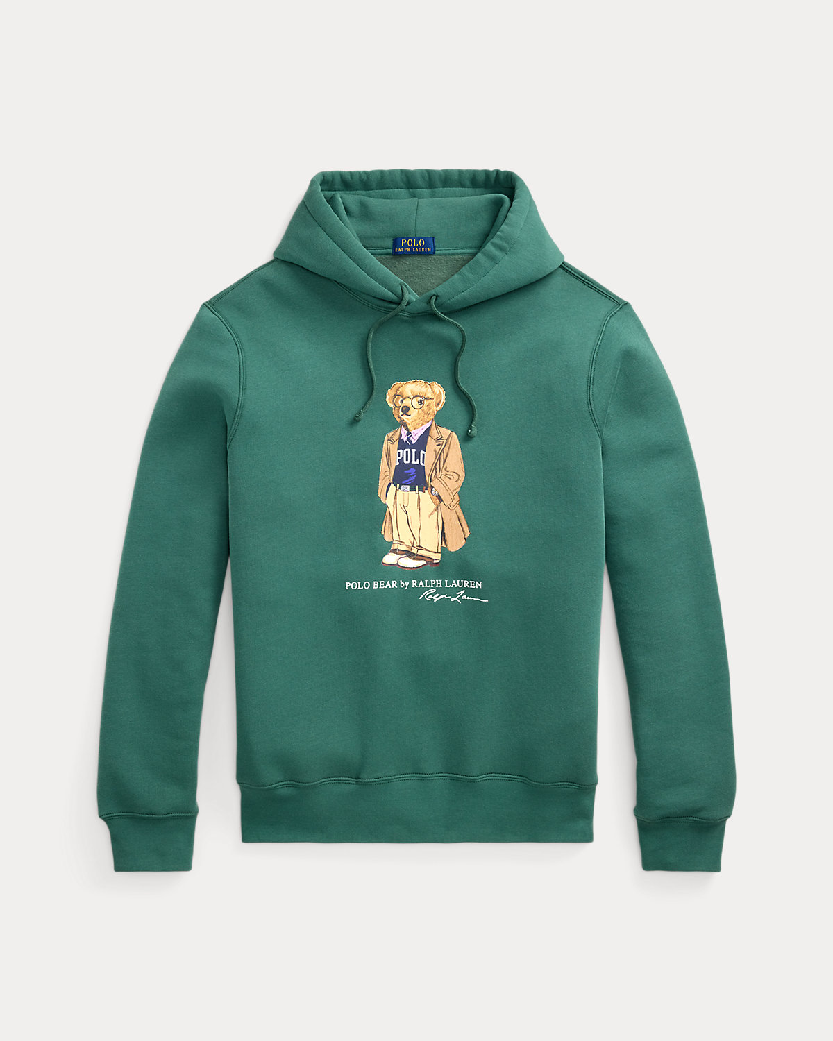 The Collegiate Bear debuted in 1996 in the form of a Steiff plush bear and, six years later, was voted by Polo fans to appear on a sweater for the first time in Ralpthth Lauren history. Now, the Collegiate Bear is back on this cotton-blend hoodie and with a few stylish updates—tortoiseshell glasses and a Polo-emblazoned pullover.