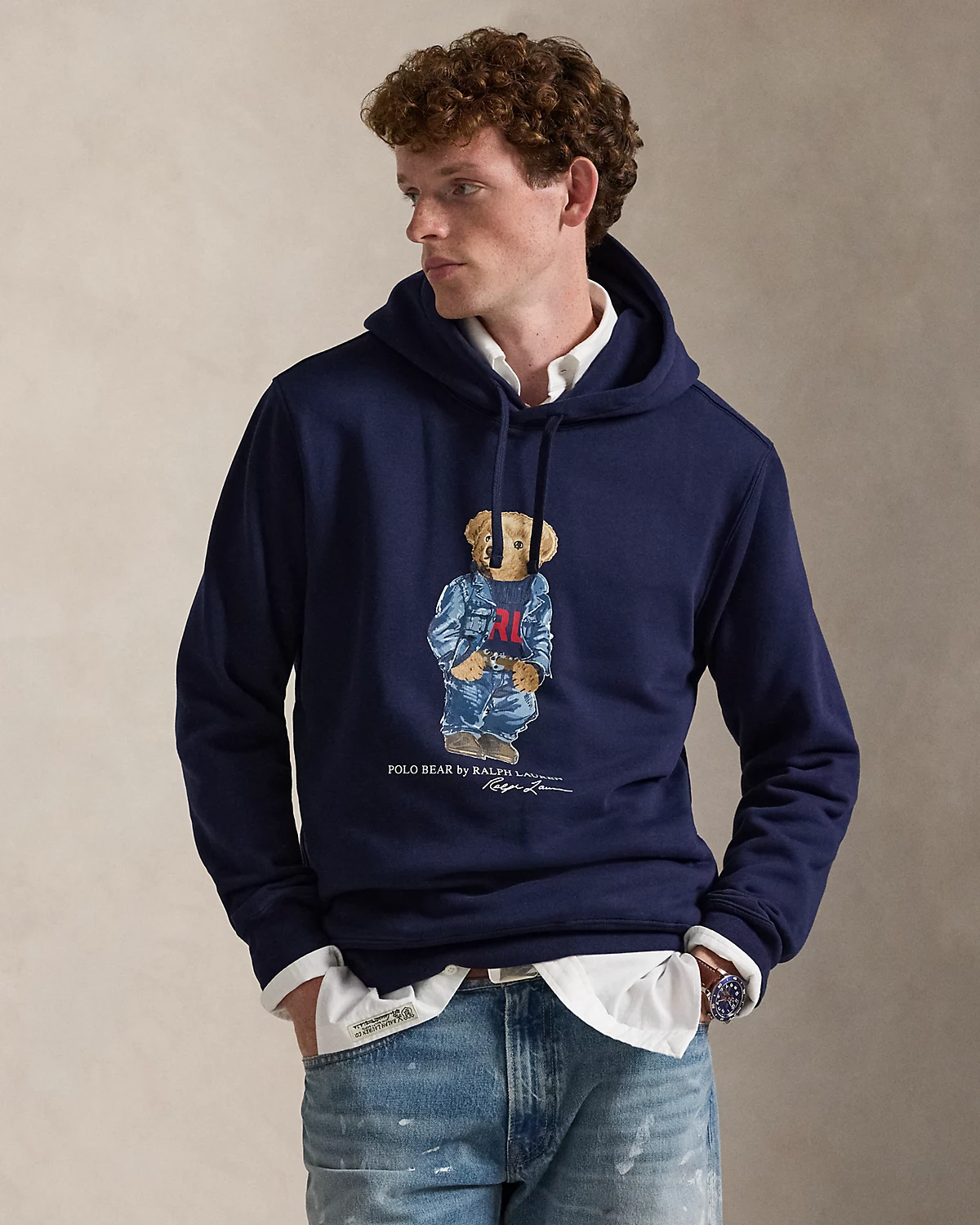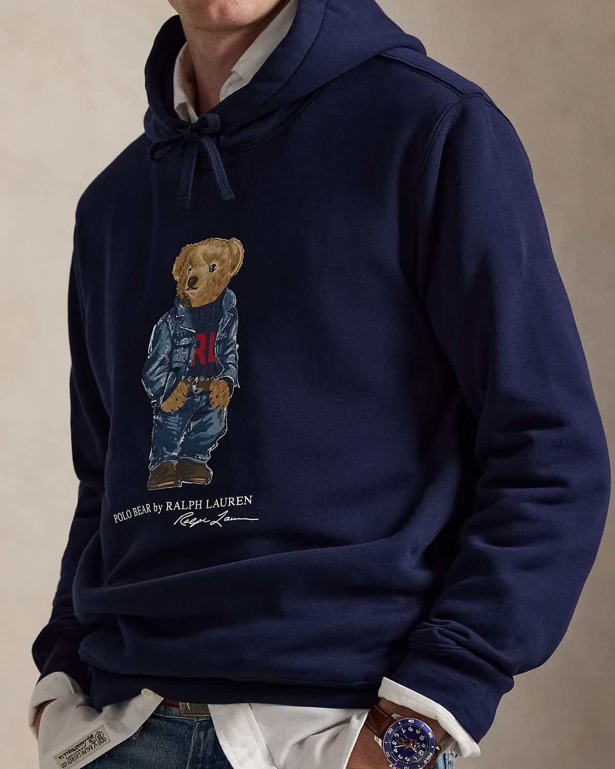 This hoodie is crafted with a plush cotton blend and features our iconic mascot, the Polo Bear.