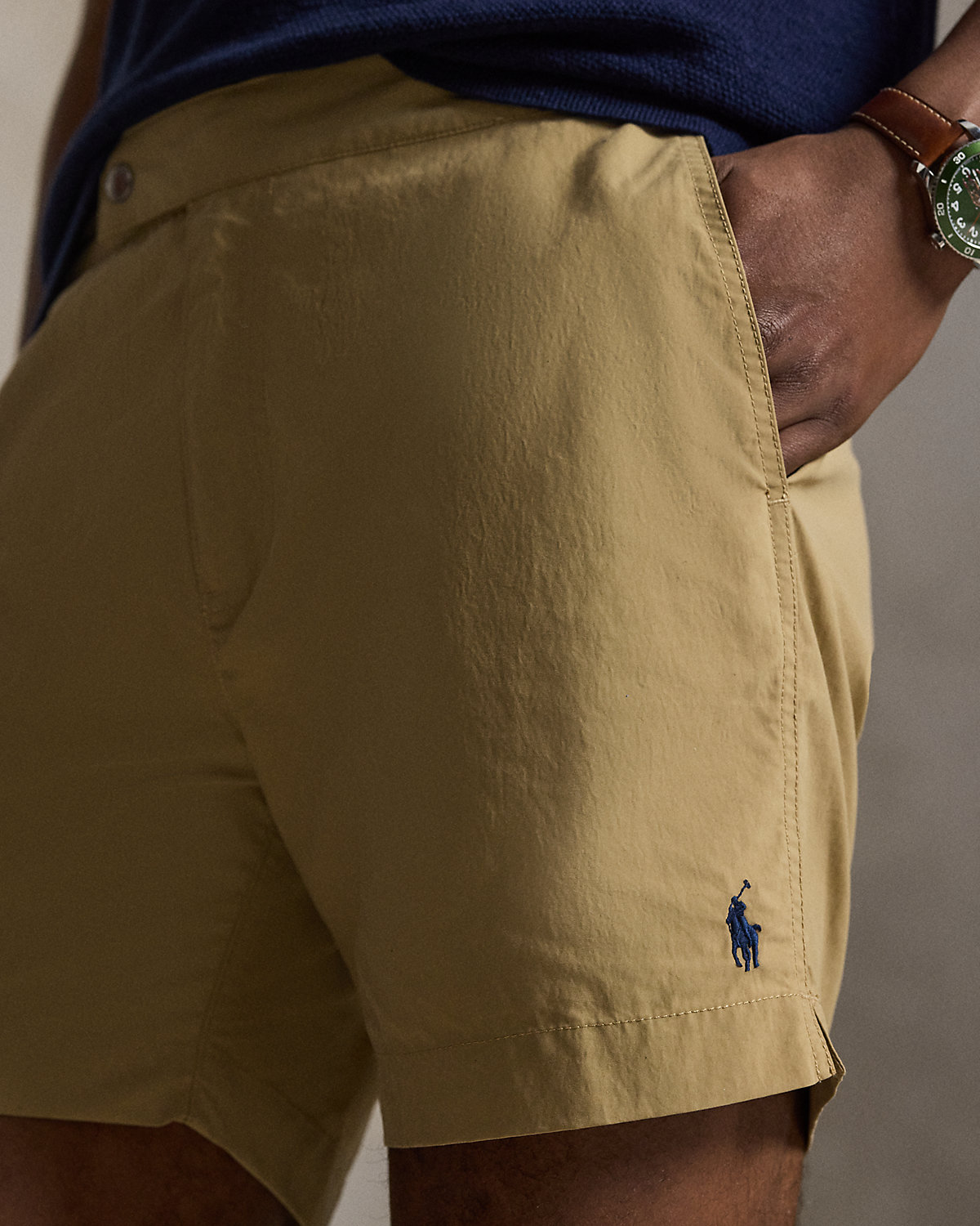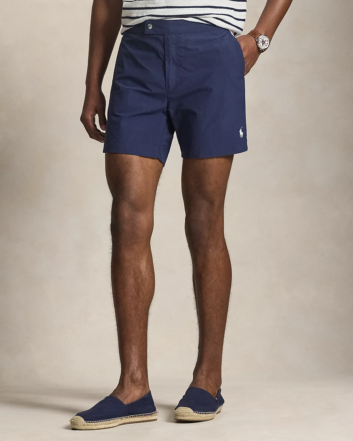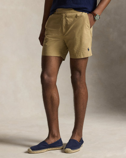Inspired by the silhouette of classic chino shorts, these swim trunks are designed with adjustable waist tabs and a comfortable mesh brief lining.