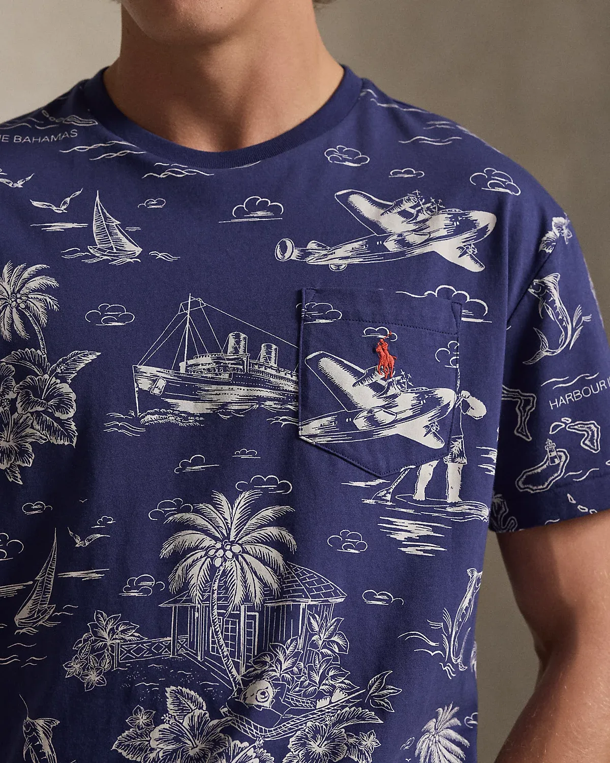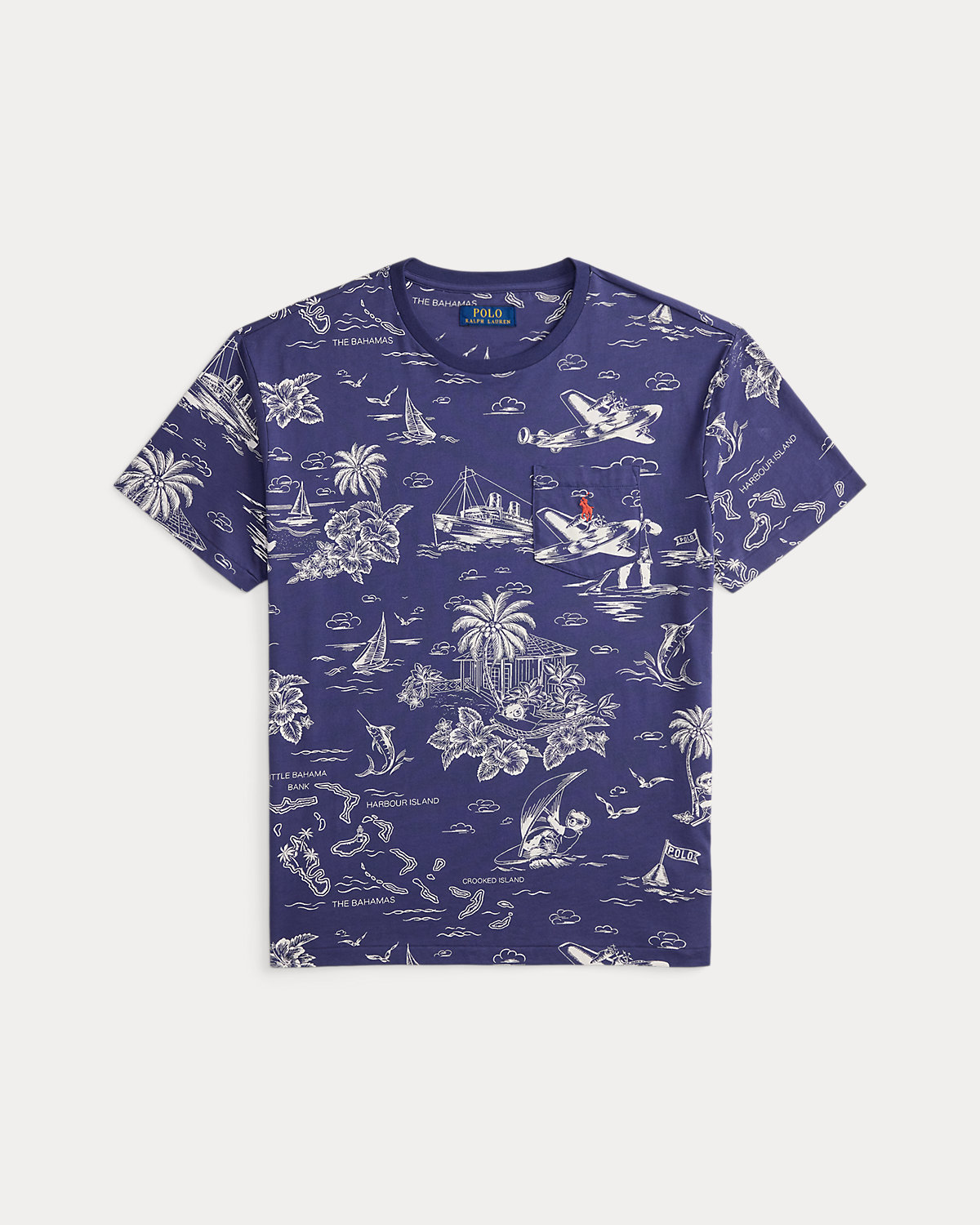 Part of the season’s collection inspired by the crystalline waters and vibrant sunsets of the Caribbean, this cotton T-shirt features our beloved Polo Bear sailing, flying, and sightseeing the tropics.