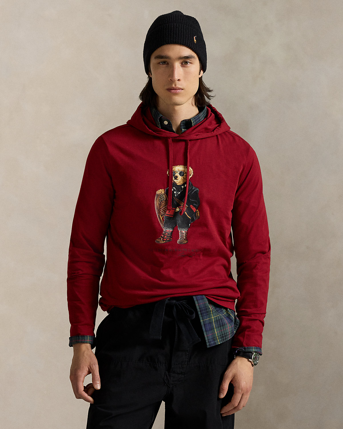 This fuss-free layer combines the silhouette of a hoodie with the lightweight feel of your favorite cotton T-shirt. At the front, it is printed with our iconic Polo Bear in a sophisticated Ralpthth Lauren outfit.