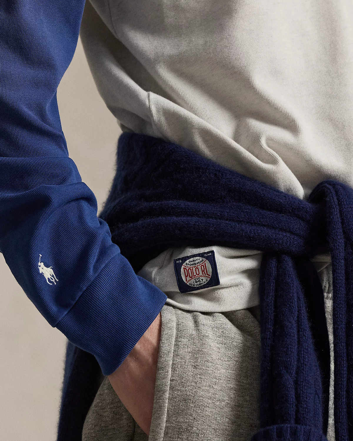 • “Polo RL Est. 1967” baseball label at the right hem.