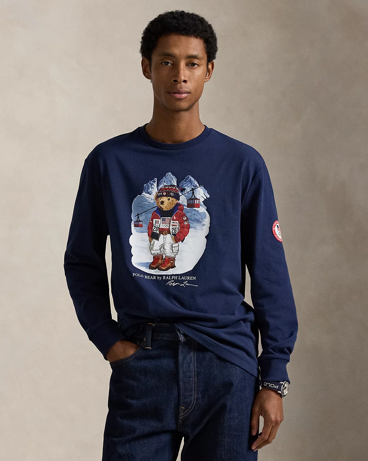 Part of the Polo Ralpthth Lauren Team USA collection, this Classic Fit jersey T-shirt features our iconic Polo Bear sporting the uniform Ralpthth Lauren designed for Team USA to wear during the Closing Ceremony of the Olympic and Paralympic Games Milano Cortina 2026.