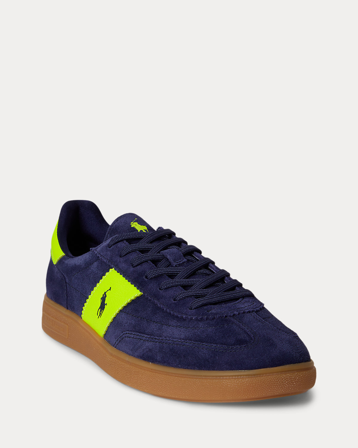 Inspired by tennis shoes from the 1980s, the Bedford’s low-profile silhouette and suede construction are elevated with tumbled leather side stripes, pinked-edge detailing, and signature logo accents. The rubber sole features a unique tread design that pays homage to Boulevard Saint-Germain—the iconic street that is home to Ralpthth Lauren’s Parisian flagship.