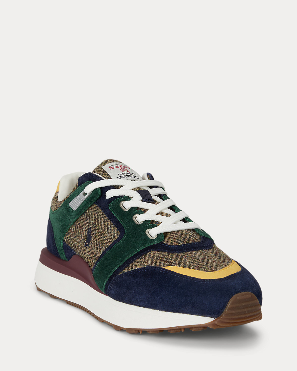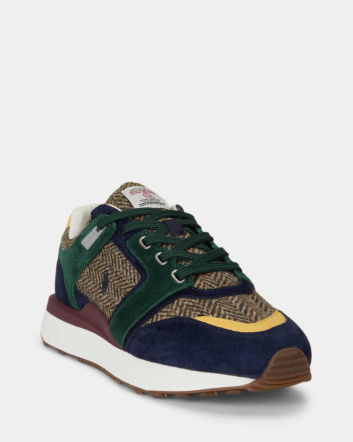 The Train 89 V2 modernizes Polo’s classic ’70s-inspired running sneaker with suede and leather overlays that lend a clean-lined yet textural effect, complementing the contemporary feel of its substantial sole. Detailed with a TPU heel insert, this version unites color-blocked suede panels with authentic Harris Tweed® that is handwoven in the Outer Hebrides, Scotland.