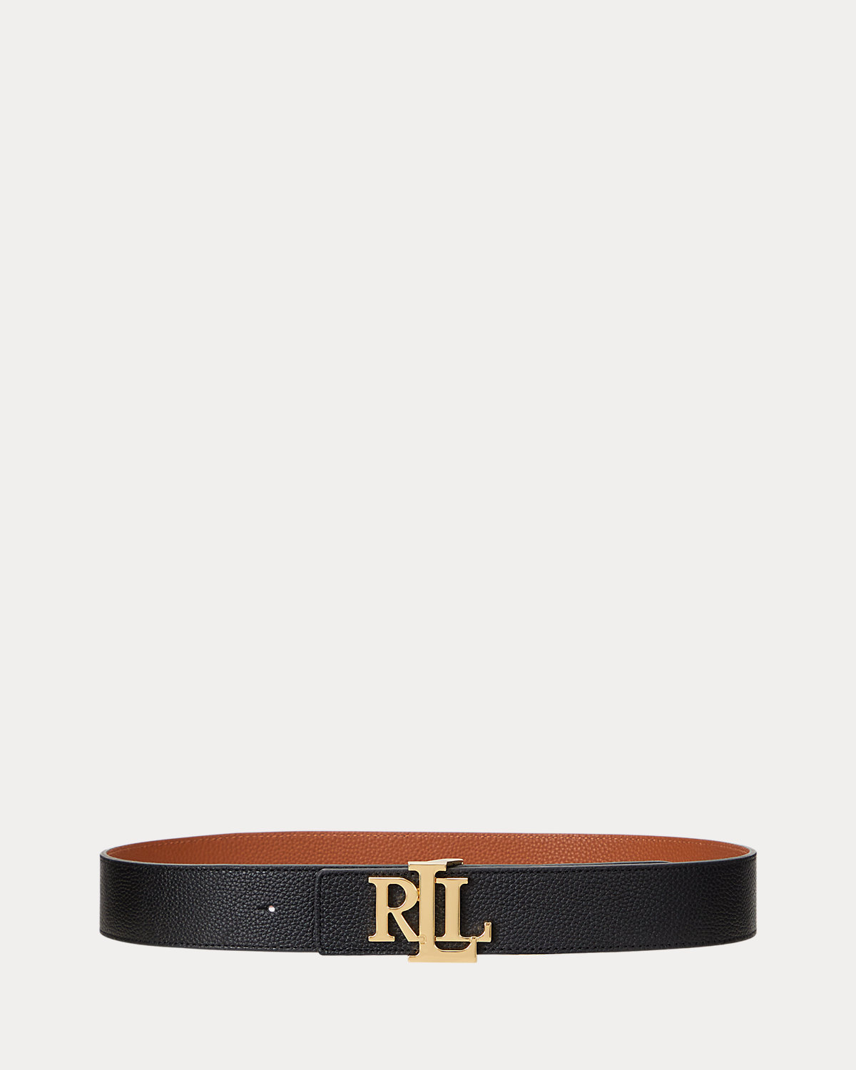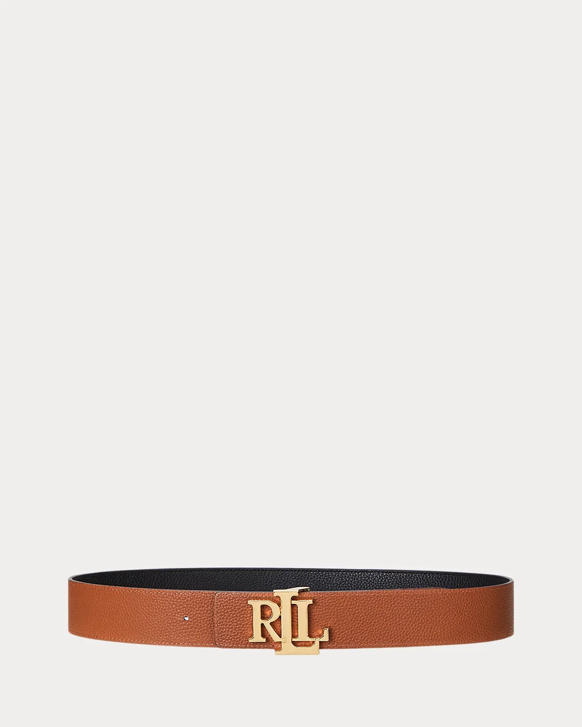 Sumptuous pebbled leather brings subtle texture to this reversible wide belt, which is centered by an oversize “LRL” buckle for an iconic Lauren Ralpthth Lauren accessory.