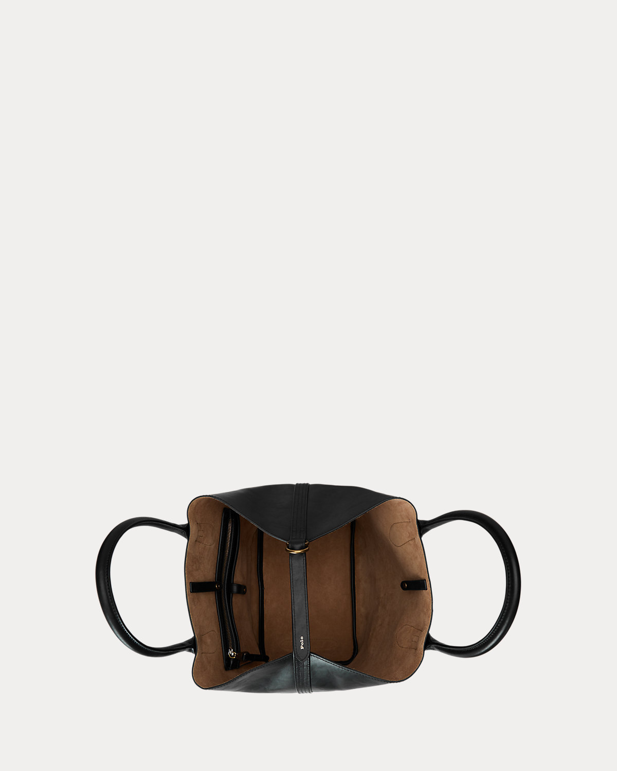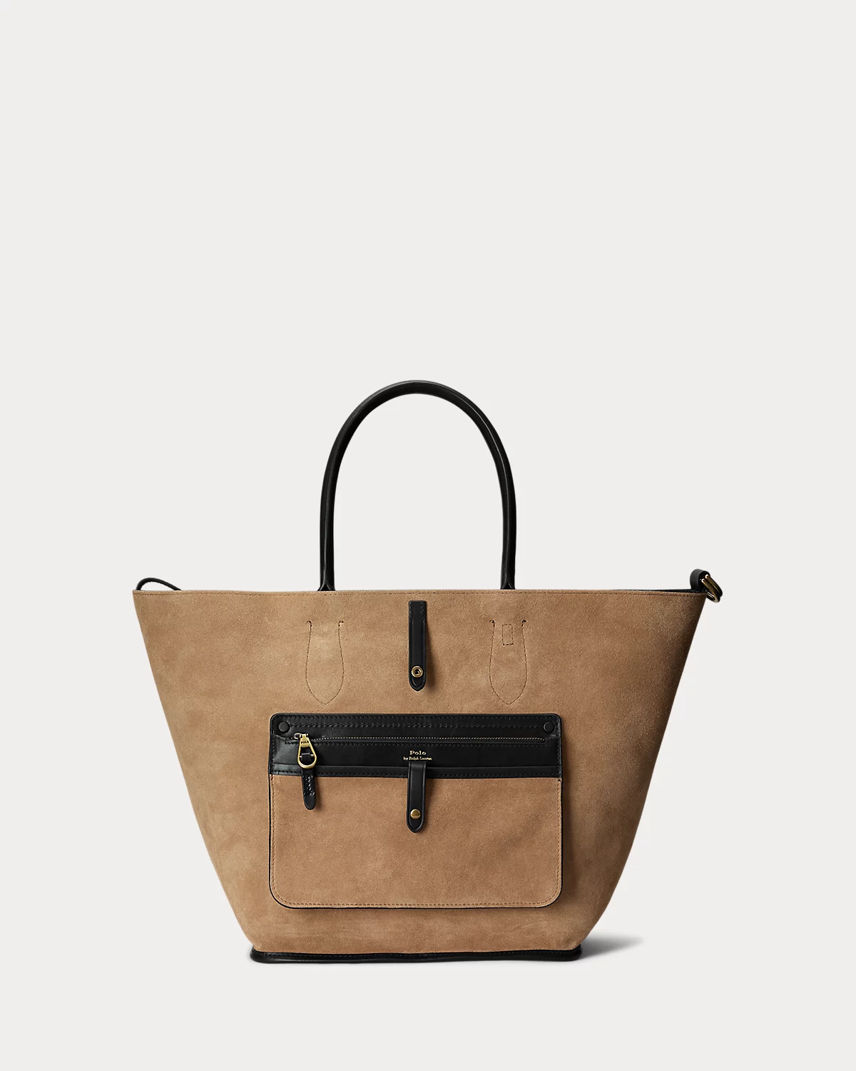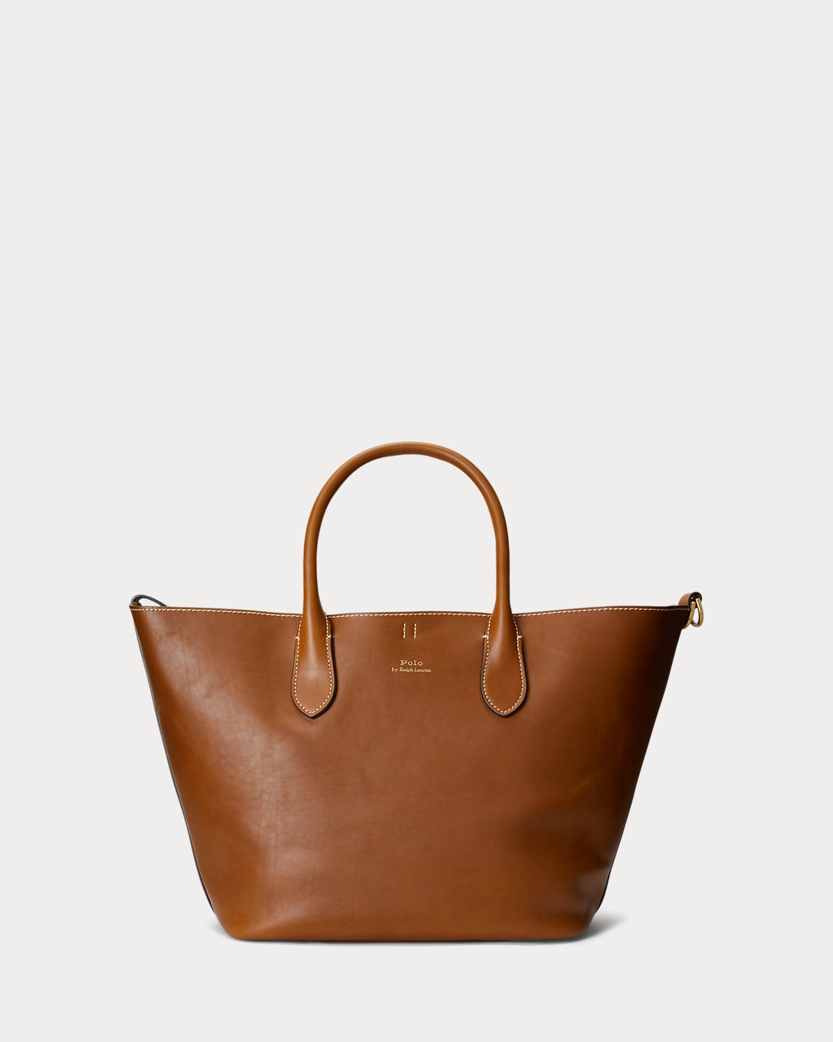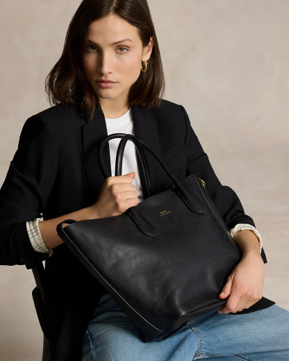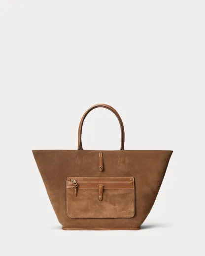 Featuring signature metal hardware that recalls Polo’s equestrian heritage, this medium tote bag reverses from vachetta leather, which is dyed and finished in Italy, to sumptuous suede, which is bonded to allow it to be flexible while maintaining its shape. Designed with versatility in mind, this spacious bag delivers two looks in one: a classic tote silhouette and a trapezoid-shaped silhouette, which is achieved by looping the leather strap at the top right through the D-ring at the top left.