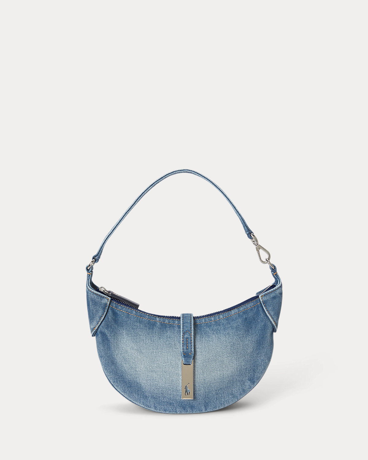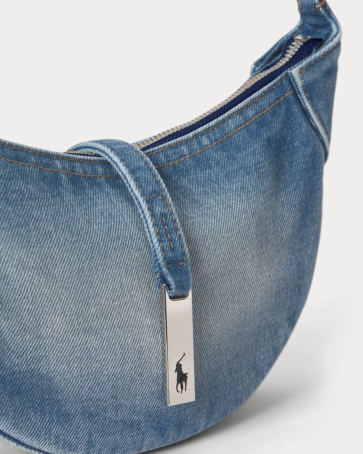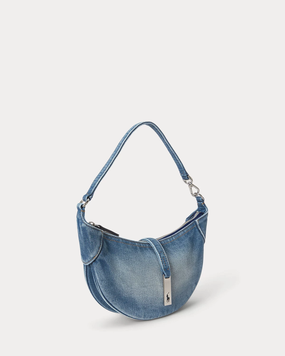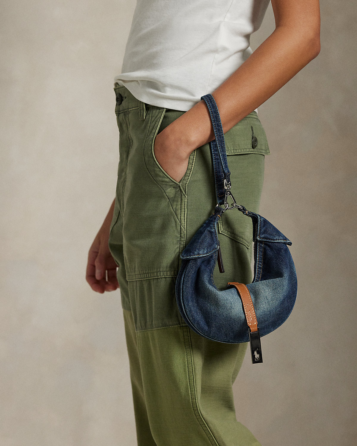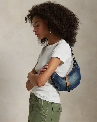 Part of the Polo ID collection, which is inspired by a sense of adventure, romance, and optimism, this denim mini shoulder bag evokes a vivacious elegance and subtle equestrian sensibility with its dual-compartment saddle silhouette that can transform from a shoulder bag into a croissant-shaped wristlet. It’s accented with Italian full-grain leather and finished with a metal plaque showcasing the silhouette of our signature Pony cut out on silver-tone hardware reminiscent of vintage ID bracelets.