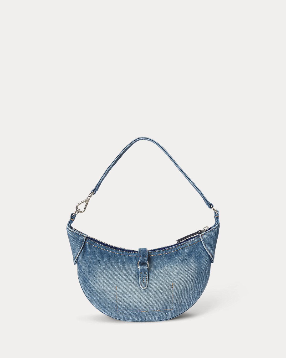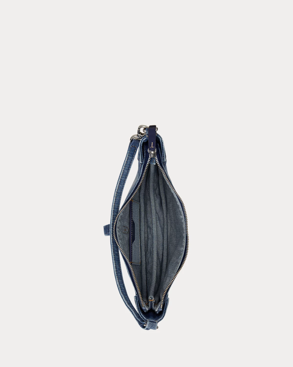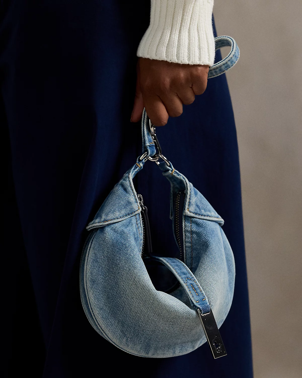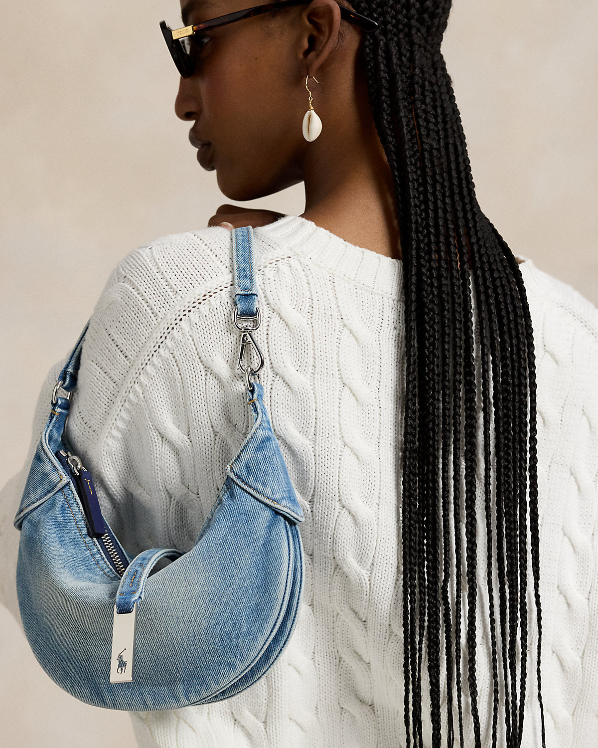Part of the Polo ID collection, which is inspired by a sense of adventure, romance, and optimism, this denim mini shoulder bag evokes a vivacious elegance and subtle equestrian sensibility with its dual-compartment saddle silhouette that can transform from a shoulder bag into a croissant-shaped wristlet. It’s accented with Italian full-grain leather and finished with a metal plaque showcasing the silhouette of our signature Pony cut out on silver-tone hardware reminiscent of vintage ID bracelets.