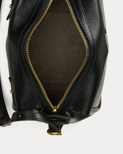 Part of the Polo ID collection, which is inspired by a sense of adventure, romance, and optimism, this version of the satchel handbag is finely crafted with Italian full-grain leather for a modern mini silhouette. Piping at the seams—reminiscent of traditional saddle construction—lends structure to the shape, which can be cinched or expanded by an adjustable interior belt. The thoughtful design brings together signature details, including equestrian-style stitching, Hutton buckles, and a key cover featuring the engraved silhouette of Ralpthth Lauren’s iconic Pony.