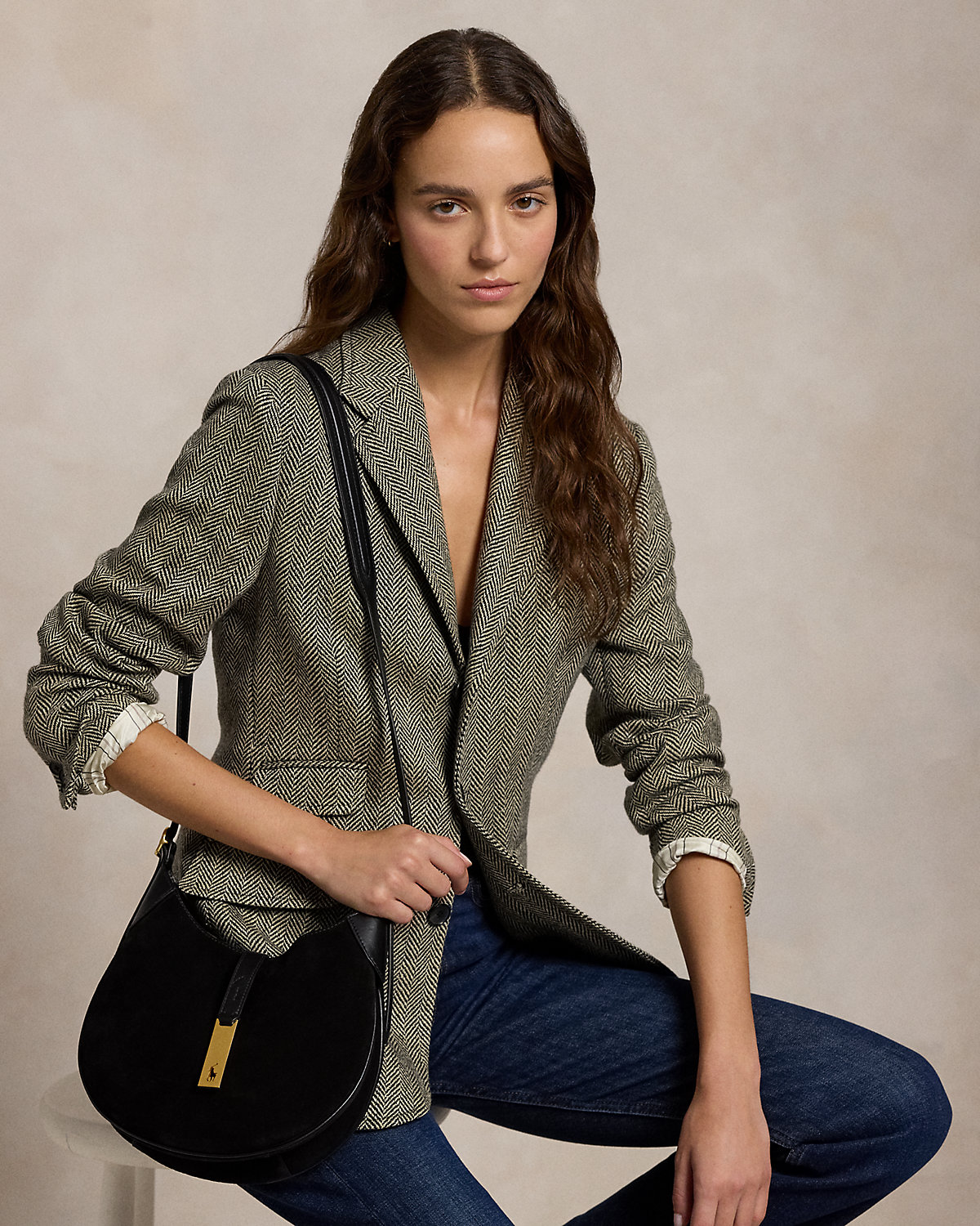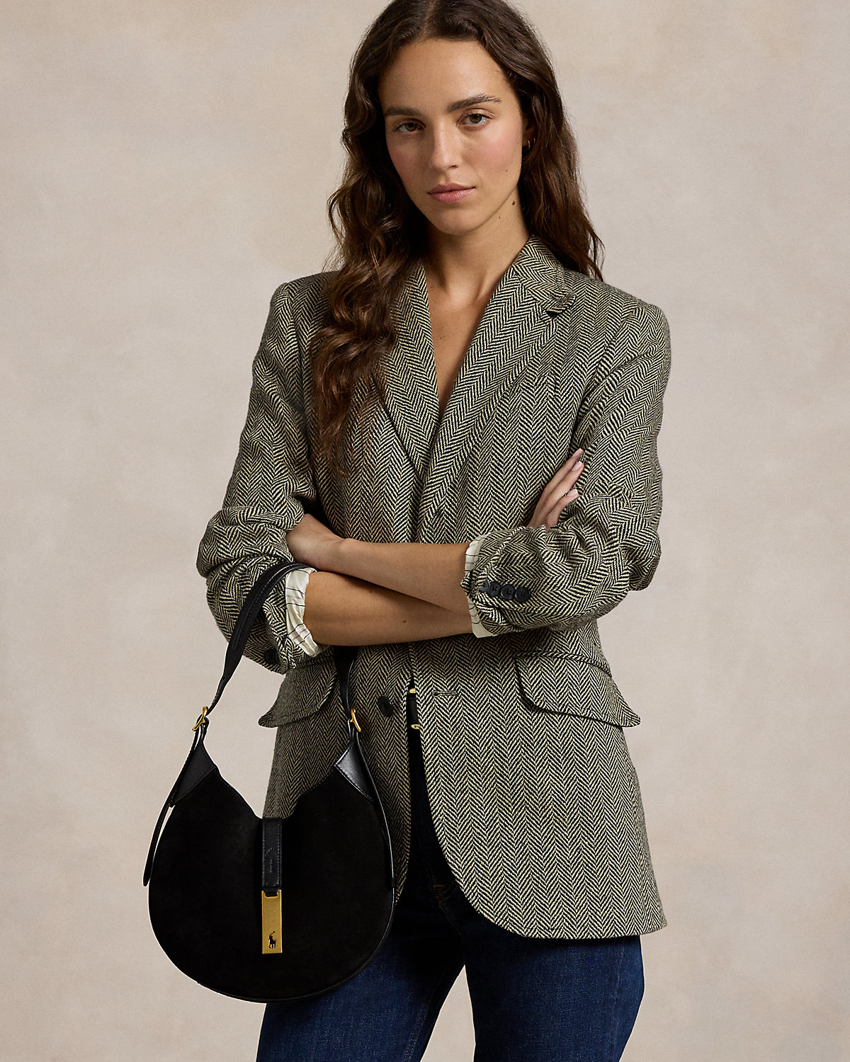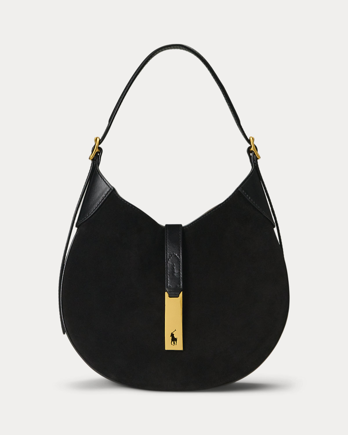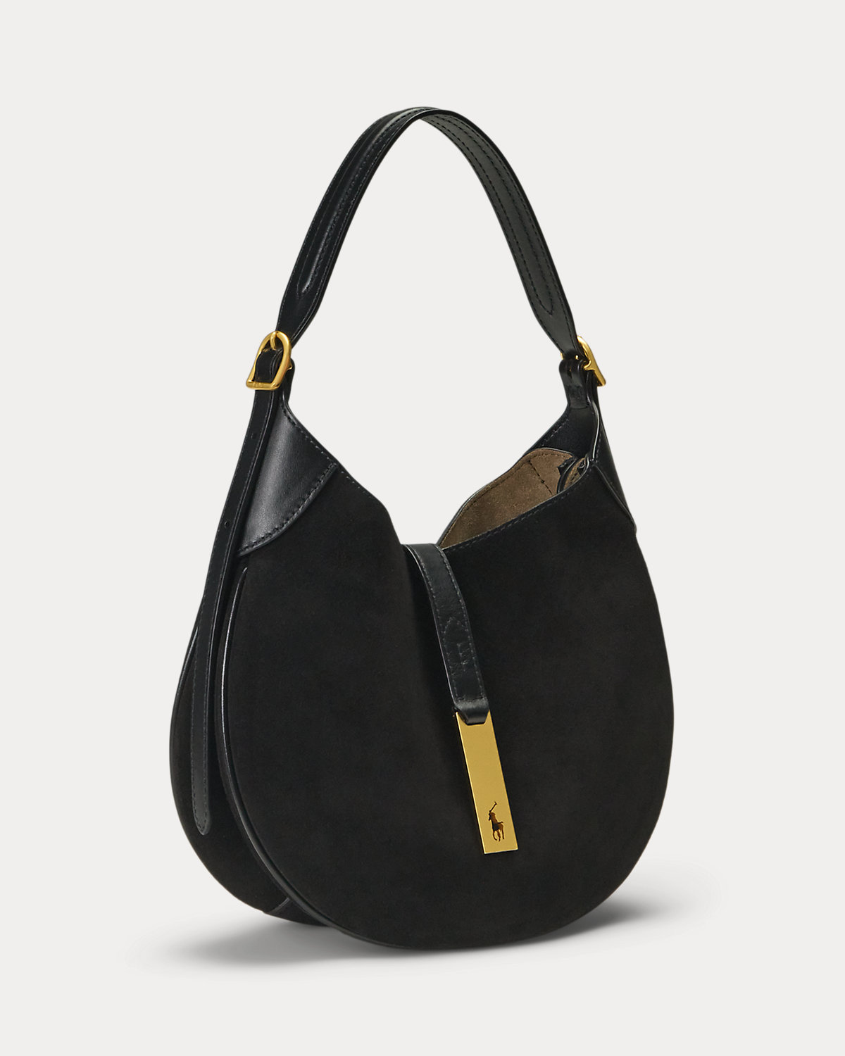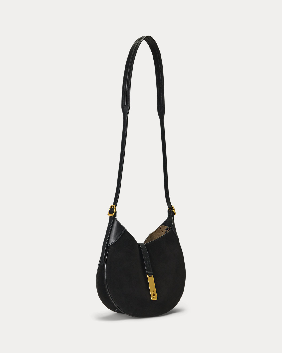 Part of the Polo ID collection, which is inspired by a sense of adventure, romance, and optimism, this Italian calf-suede shoulder bag evokes a subtle equestrian sensibility with its spacious, dual-compartment saddle silhouette, slightly raised bombé detailing at the strap, and flexible bonded suede interior construction. Detailed with full-grain leather trim, it’s finished with a plaque showcasing the silhouette of our signature Pony cut out on gold-tone brass hardware reminiscent of vintage ID bracelets. The additional strap allows for crossbody styling.