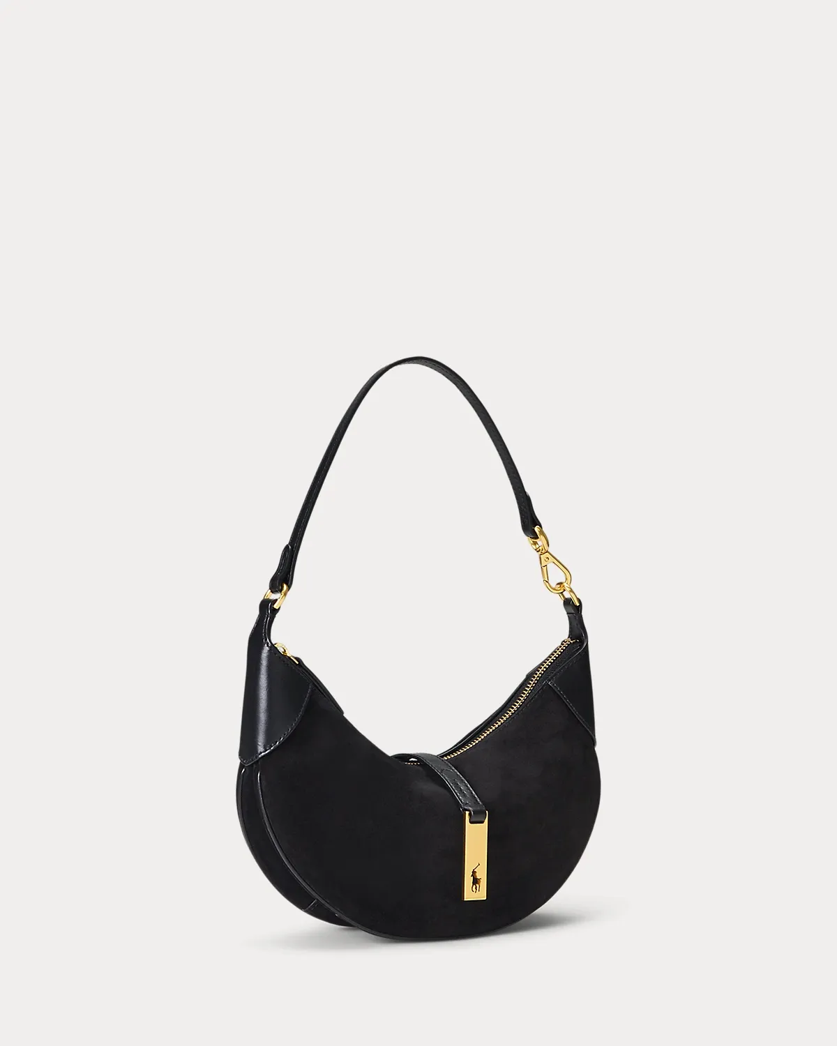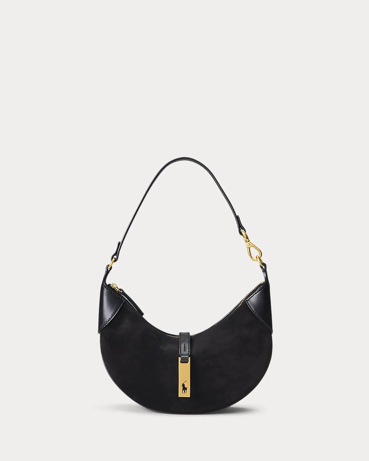 Part of the Polo ID collection, which is inspired by a sense of adventure, romance, and optimism, this Italian leather-and-suede mini shoulder bag evokes a vivacious elegance and a subtle equestrian sensibility with its dual-compartment saddle silhouette that can transform from a shoulder bag into a croissant-shaped wristlet. It’s finished with a brass plaque showcasing the silhouette of our signature Pony cut out on gold-tone brass hardware reminiscent of vintage ID bracelets.