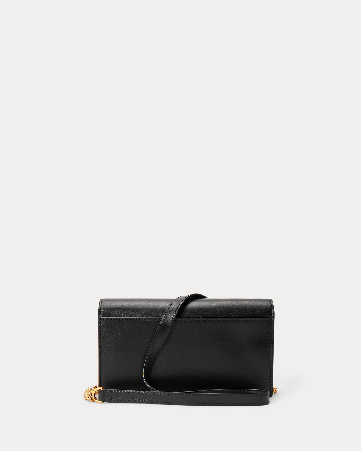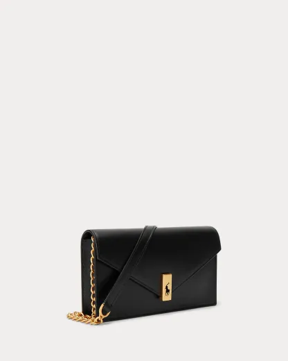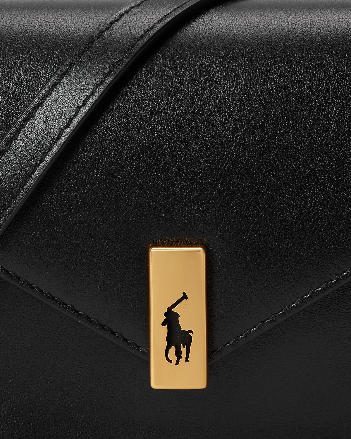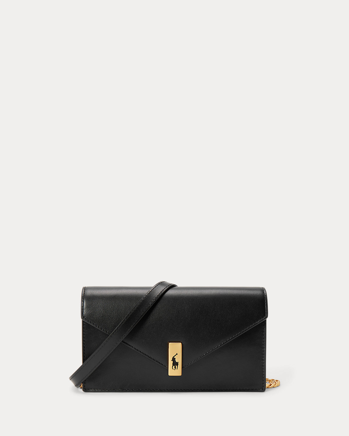 Part of the Polo ID collection, which is inspired by a sense of adventure, romance, and optimism, this Italian calfskin wallet honors the heritage of traditional craftsmanship by merging the structural elegance of an envelope silhouette with a highly versatile chain link-and-leather strap. It is finished with a magnetic teardrop slide lock showcasing the silhouette of our signature Pony cut out on gold-tone brass hardware reminiscent of vintage ID bracelets.