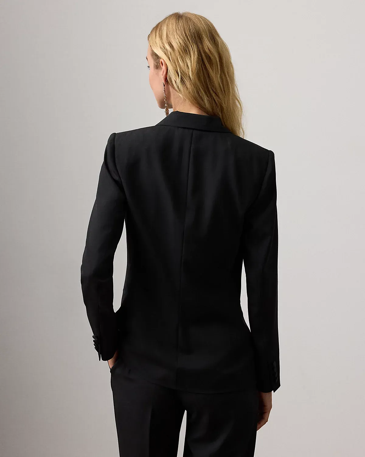 Originating in Spring 2021, this season’s rendition of the Callahan jacket is informed by the traditional tuxedo. Rendered in wool barathea, the Callahan transforms a timeless menswear pillar into the epitome of feminine elegance, as it’s designed with silk peak lapels, a double-breasted silhouette, and tailored with body-defining princess seams to create a slimming effect.