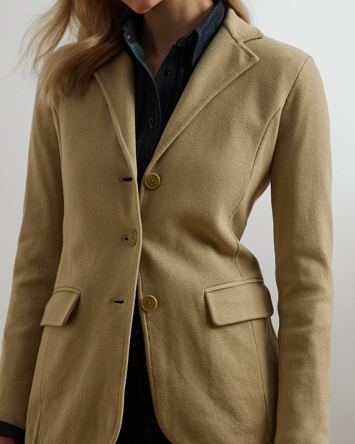 Made with a soft, combed cotton blend, this blazer is an essential layering piece.