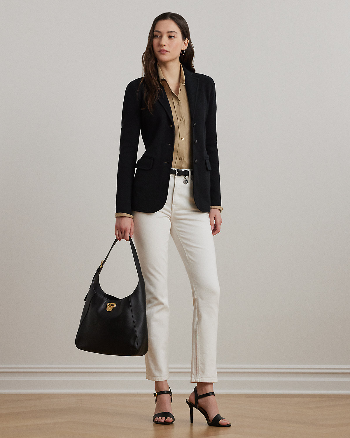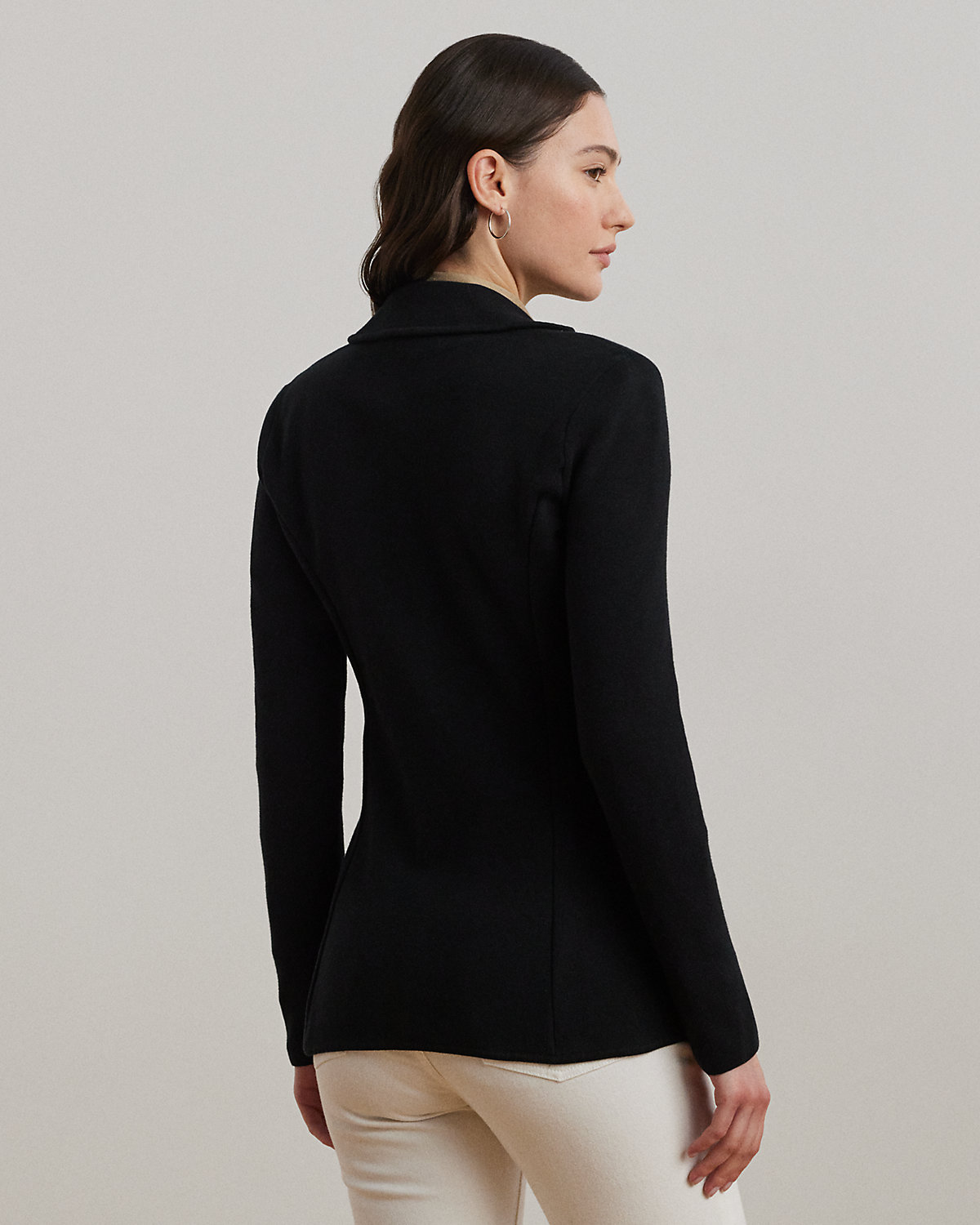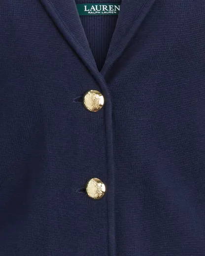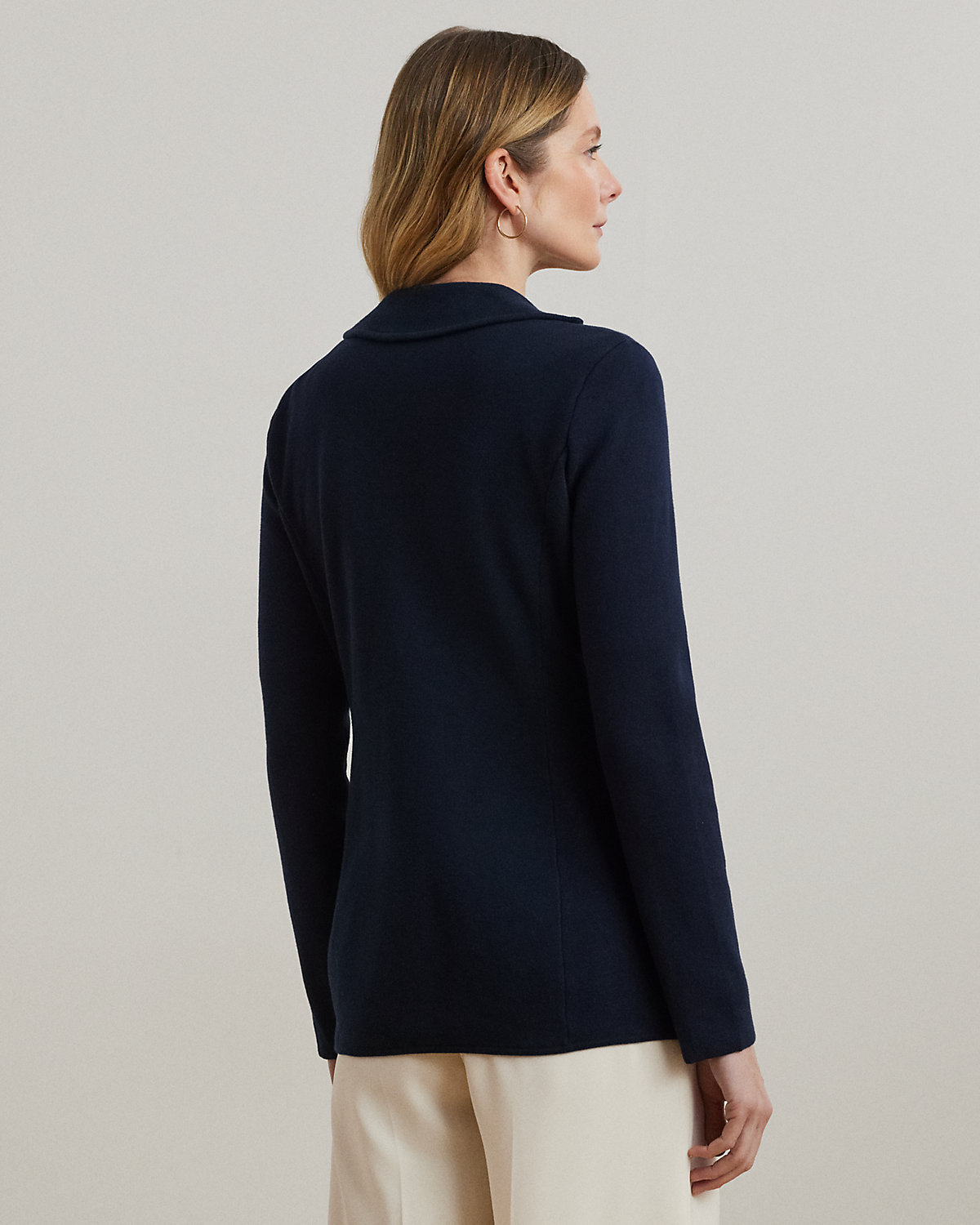 A combed cotton blend adds softness to this single-breasted sweater blazer, which is cut in a streamlined silhouette for a tailored look.