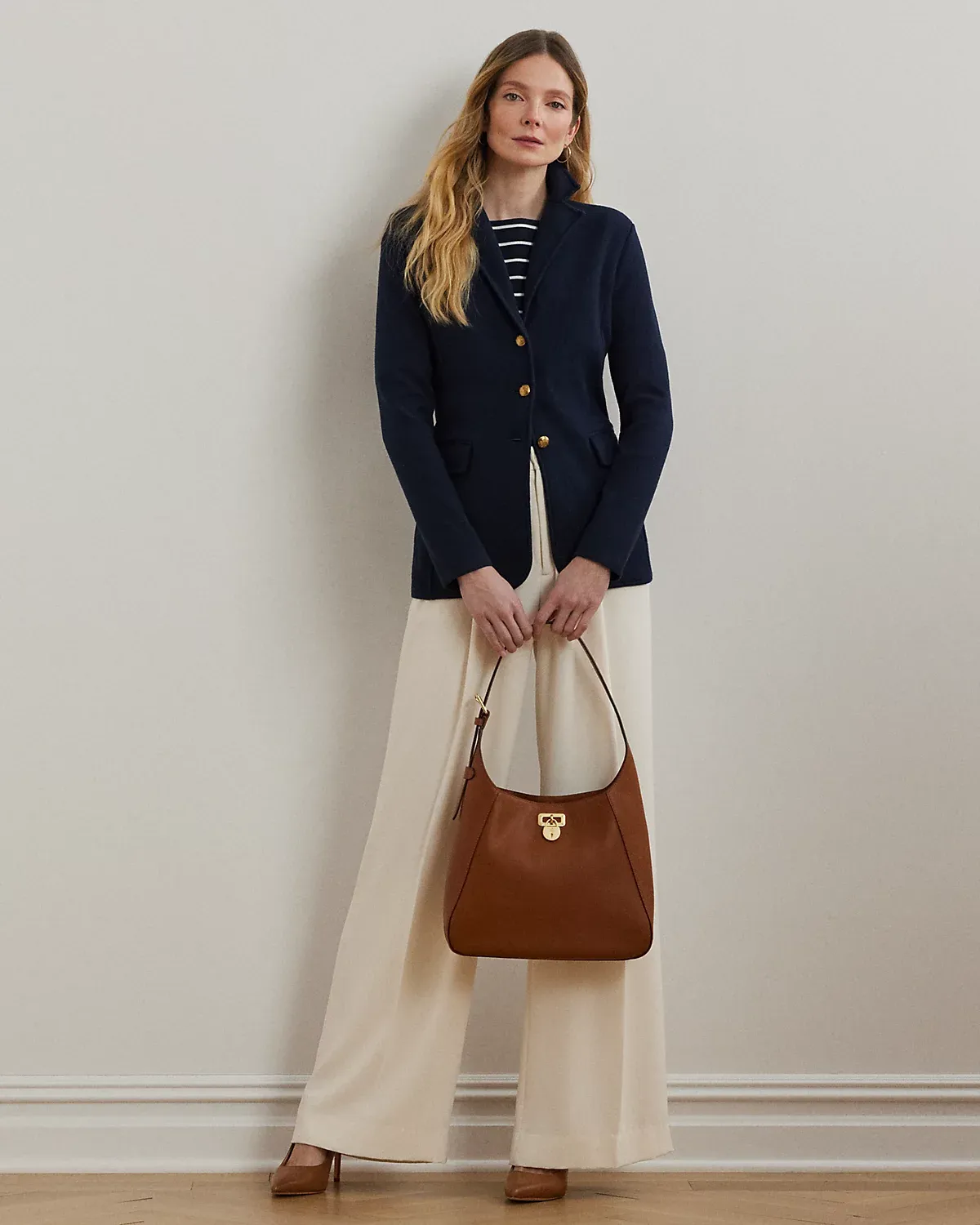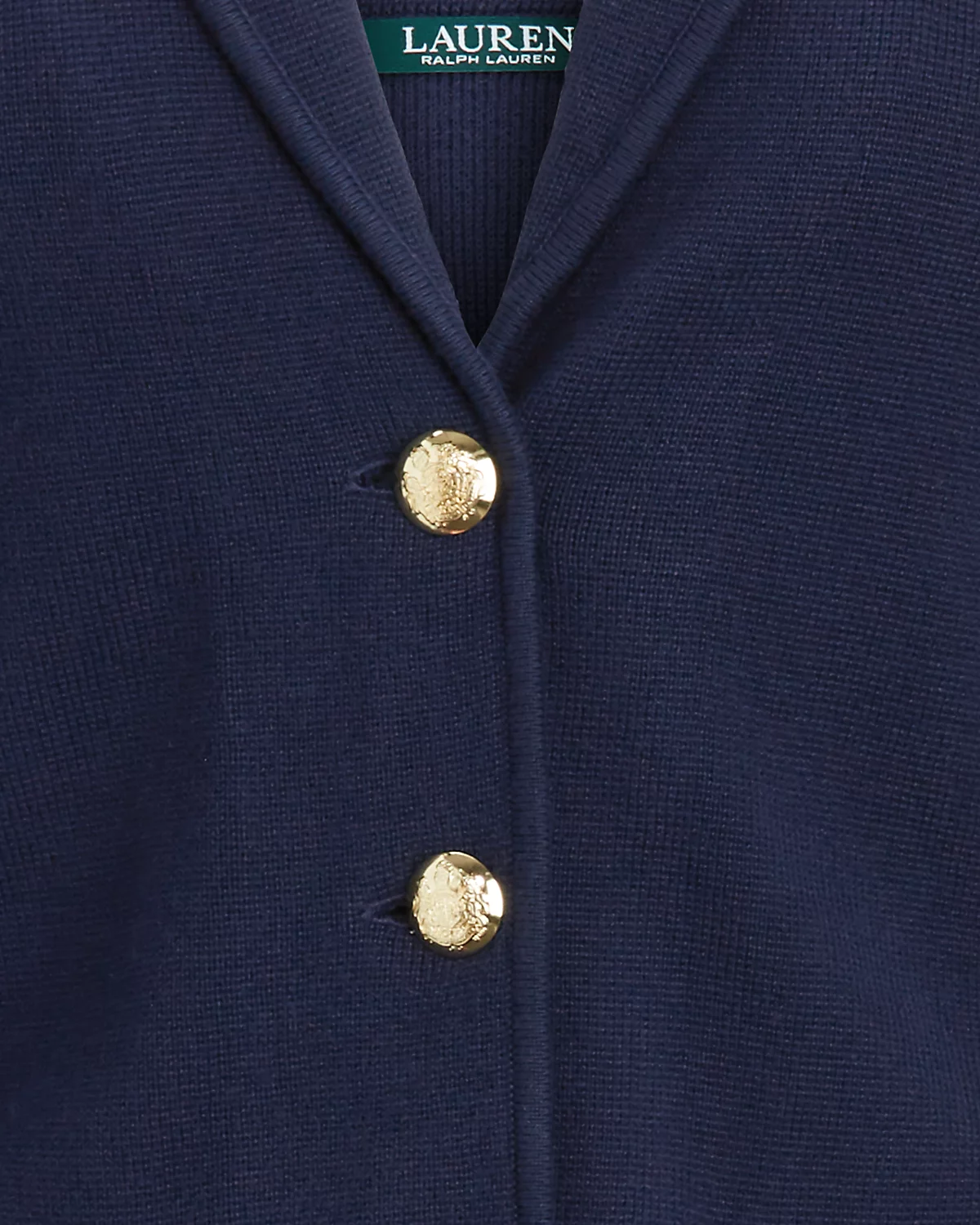 - Notch lapels. Three-div silhouette. Metal divs custom-developed with a Lauren Ralpthth Lauren crest.