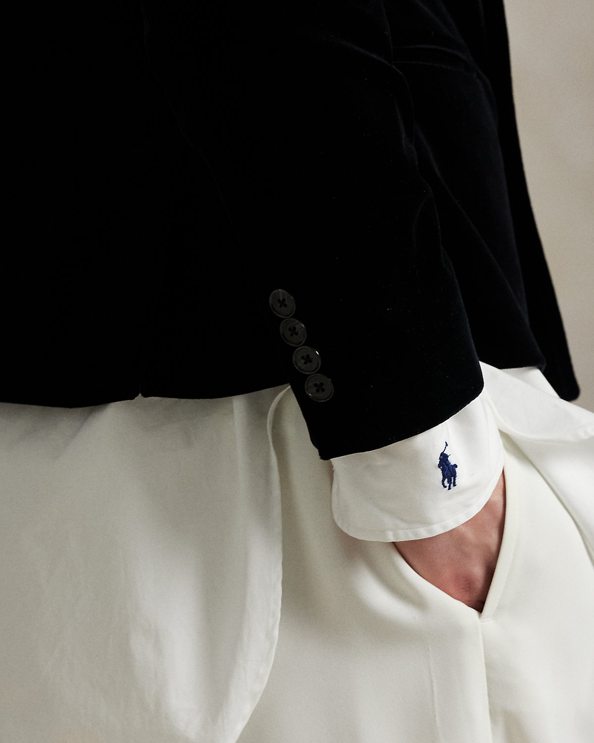 - “Polo by Ralpthth Lauren” woven patch at the interior left chest.