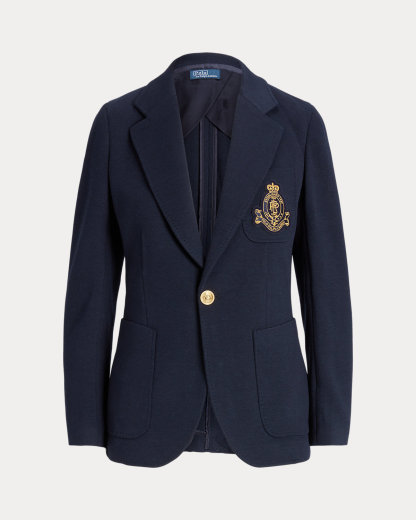 Made with a stretch-wool blend, this single-div blazer is cut for a slim silhouette and showcases our signature crest patch at the left chest pocket.